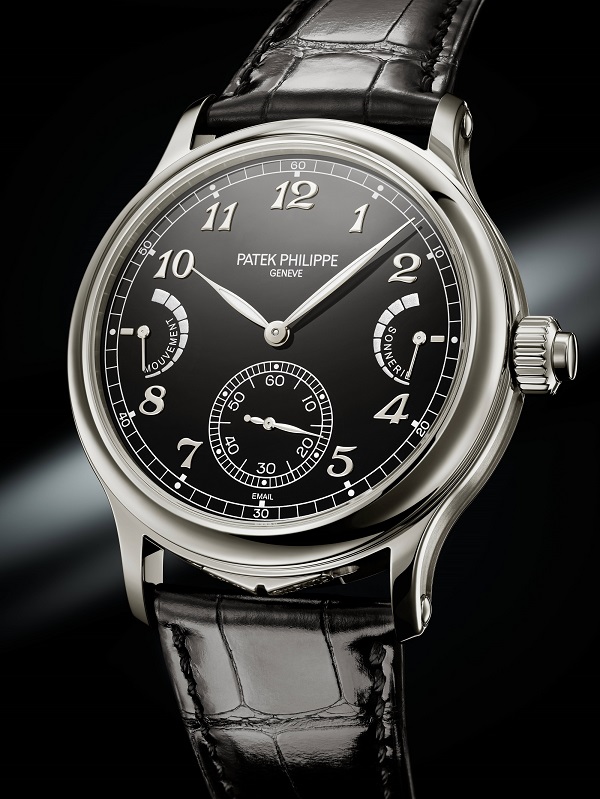 6301P大報時腕表,以鉑金表殼配以凹面表環及凹面倒角磨拭表側。