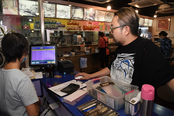 為適應疫情下的新消費模式, 吳其翰為茶餐廳引入電腦系統。