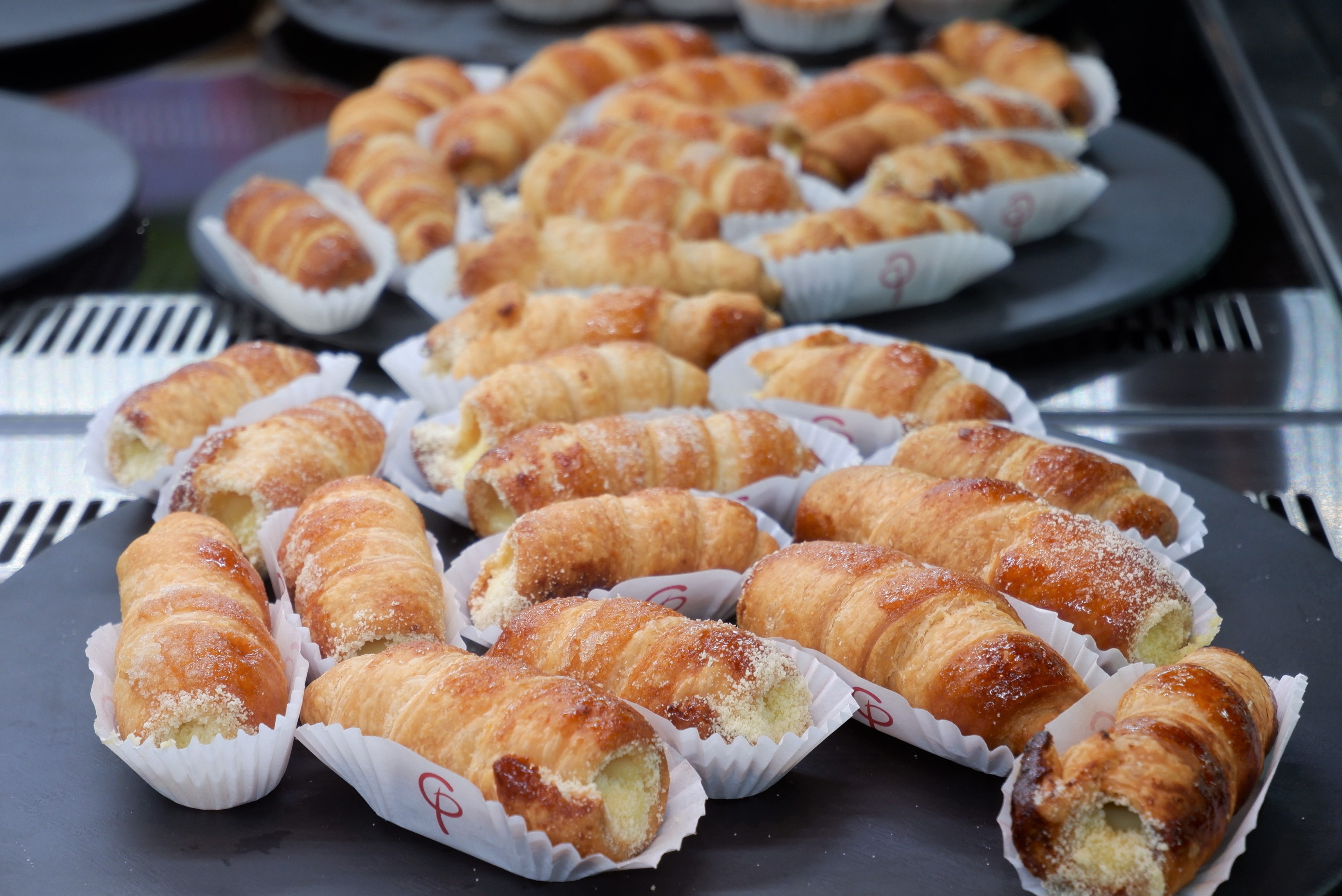 外表小巧、平平無奇的迷你酥皮吉士卷(Cannoncini Crema),實則內有乾坤。該迷你酥皮吉士卷在當地是「名物」,Giovanni Pina表示多達144層的酥皮製作難度極高,即使在意大利也不是每個烘焙師都能做到。以人手打造,捲成筒狀的酥皮入口非常酥脆,當中特製的吉士醬香滑不甜膩,小小一份,味道卻讓人驚喜,再配上一杯香濃的意大利咖啡,恍如置身意國,感覺悠閒寫意。 (撰文:Janice 圖片:Ruth)