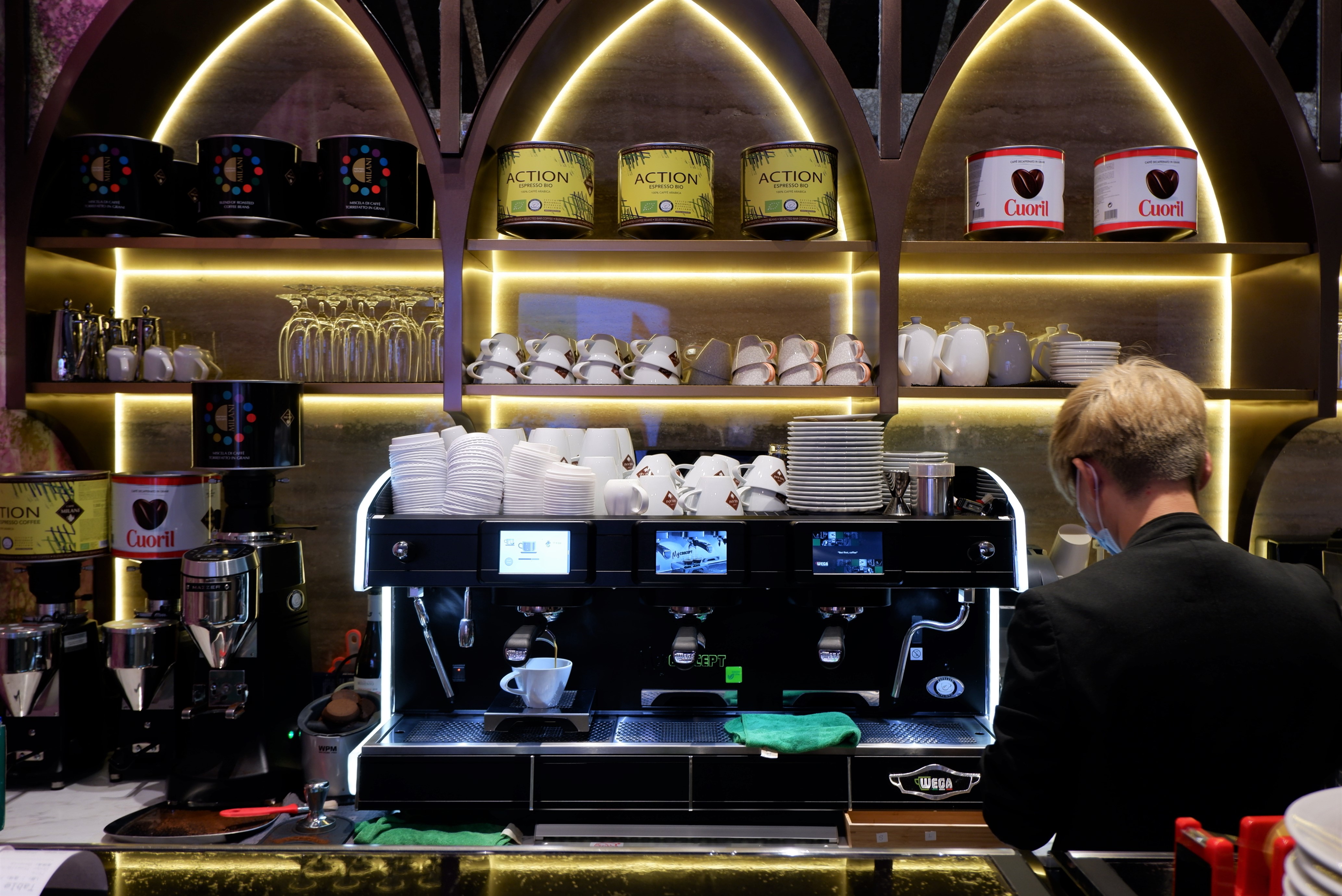 店內有最新型號的意大利傳統品牌咖啡機,店員笑稱這好比咖啡界的「法拉利」,性能、外形傲視同行咖啡機,沖泡的咖啡也別具意大利風情。