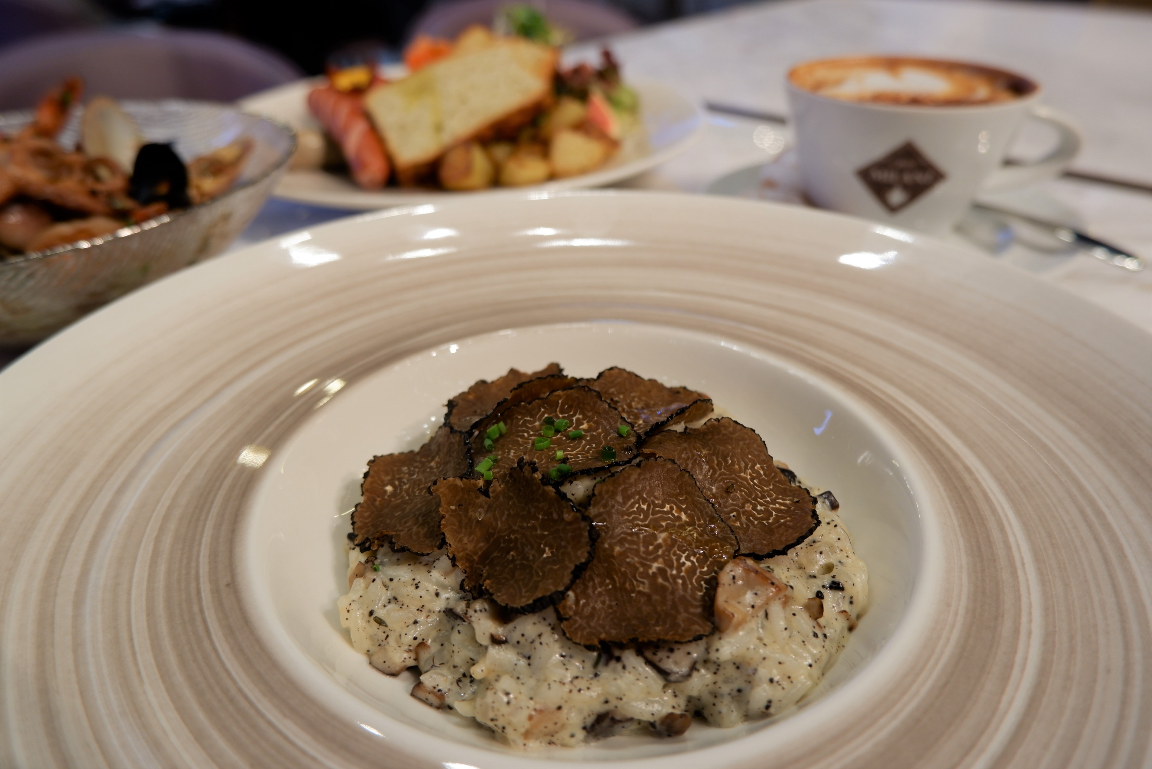 除甜品外,亦有主食。如黑松露意大利飯,大片黑松露鋪滿飯面,入口啖啖松露香味。