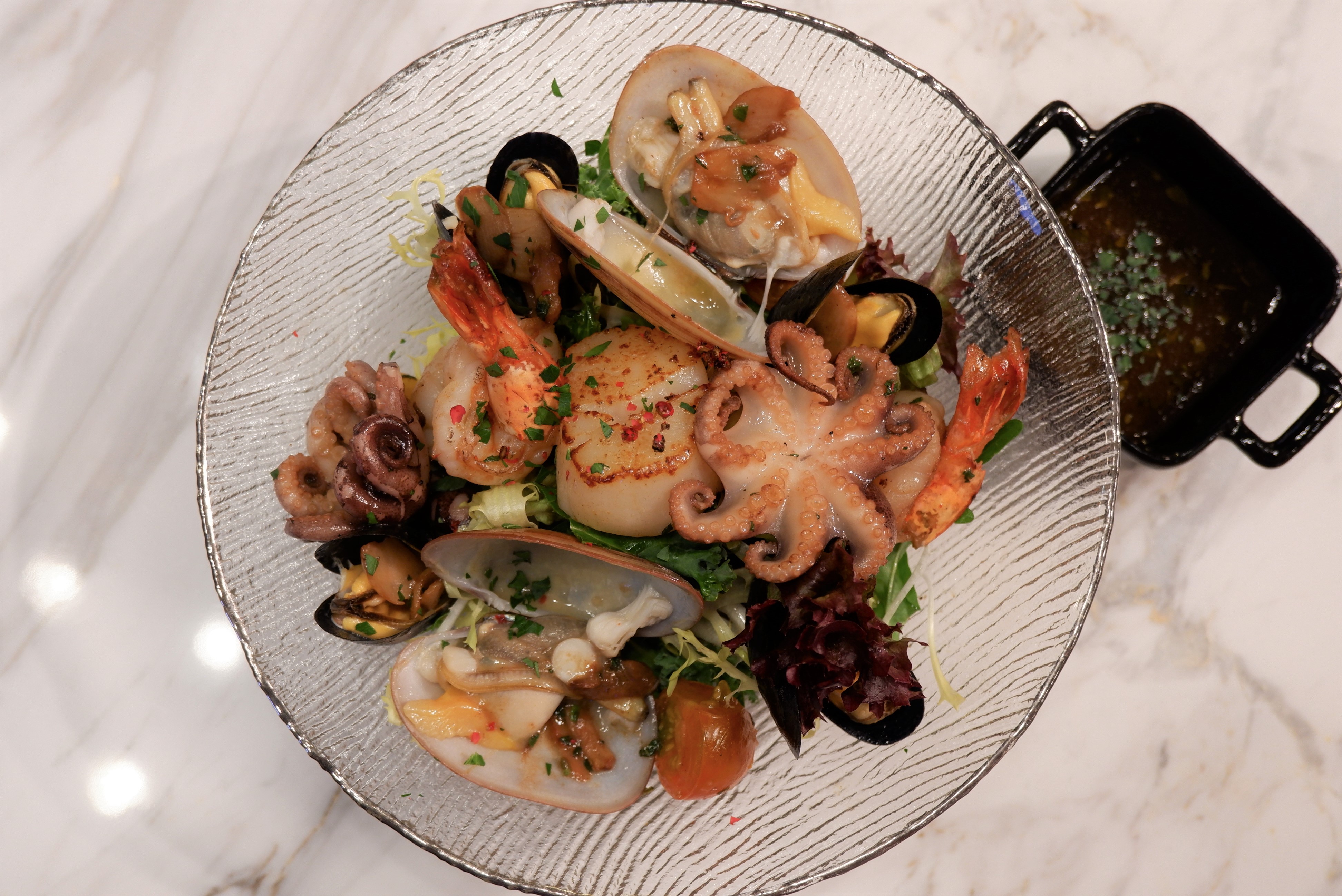 西西里島海鮮沙律配經典意式油醋汁,沙律清新又開胃,帶出海鮮的鮮味與清爽口感。