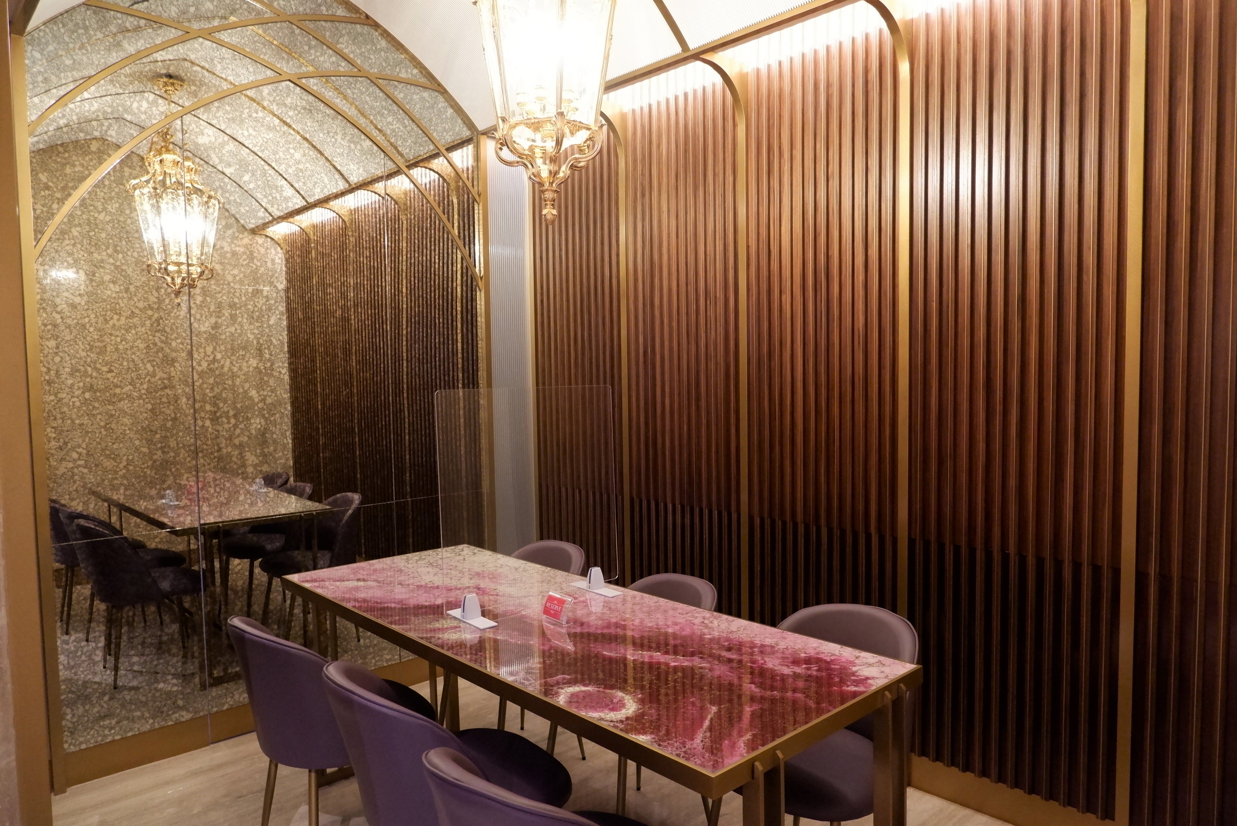 餐廳設有貴賓廂房,內置金色吊燈,裝潢風格具歐式古堡格調。