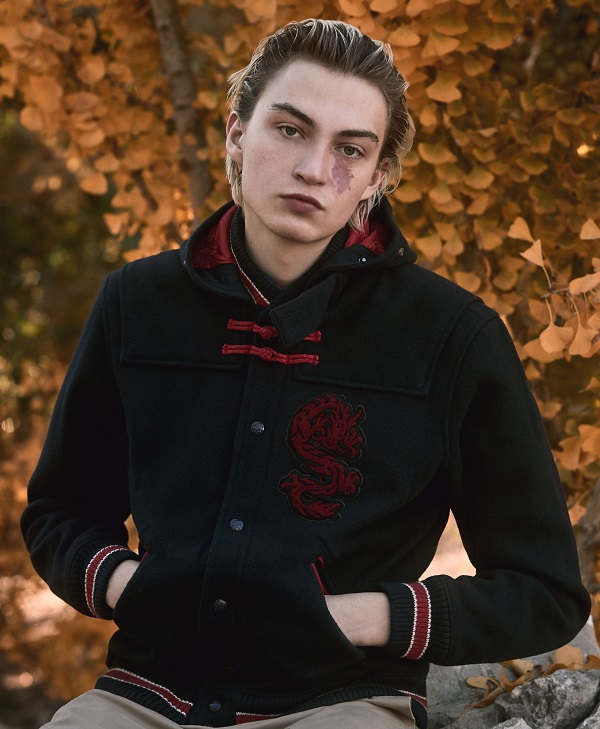 羊毛棒球外套胸口本是繡上Polo經典的小馬圖案,現換上巨大龍圖騰刺繡,街頭味道濃烈。