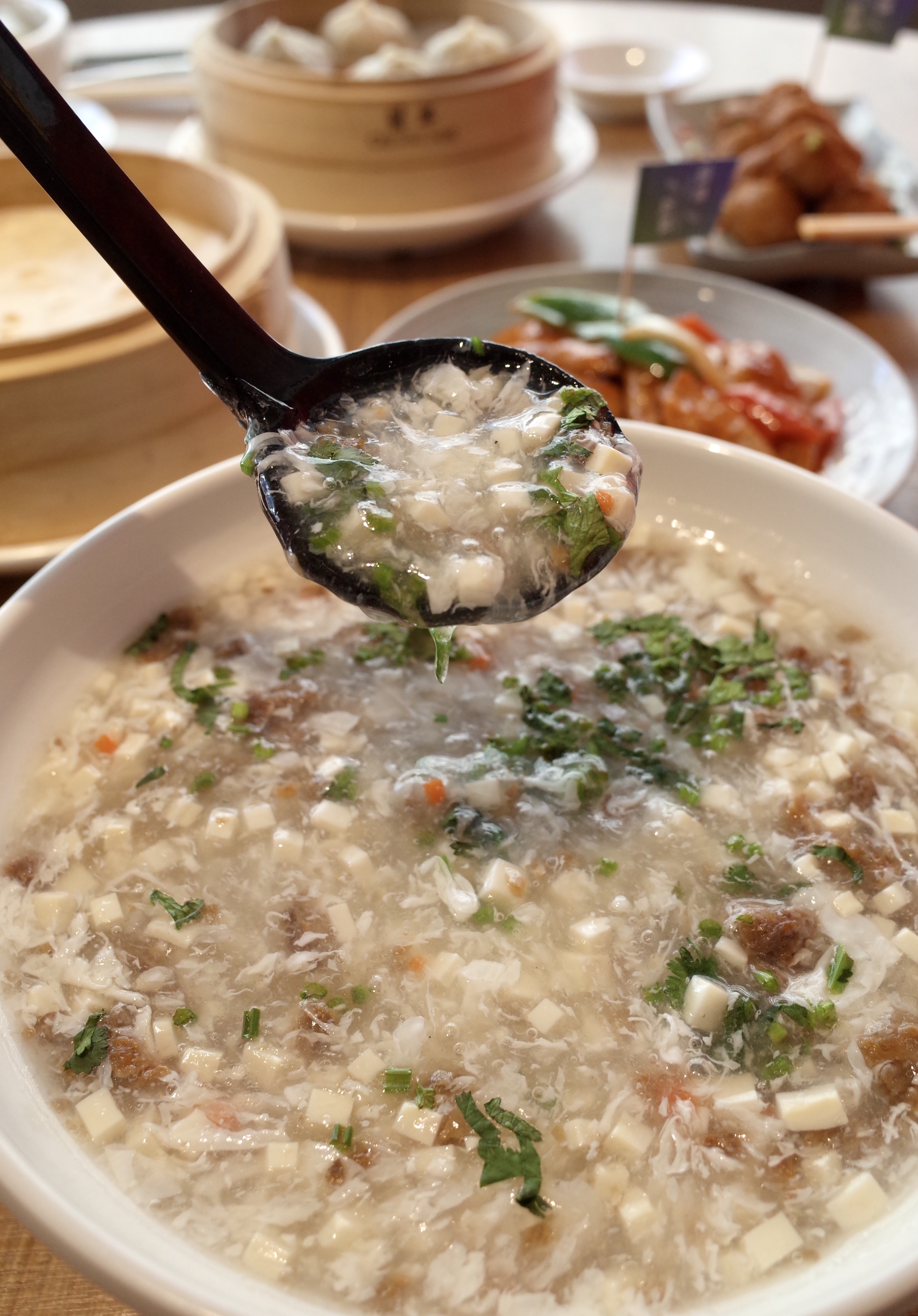 另一道「西湖翠玉」是素食版西湖牛肉羹,牛肉羹一般會把免治牛肉調味後煮熟,然後加入雞湯中,再加入豆腐及芫荽後以蛋白拉花。餐廳以豌豆蛋白和紅菜頭等天然食材製成的未來牛肉入饌,取代免治牛肉。同樣將「牛肉」調味處理,然後按傳統方法落鑊煮熟,再加入熱辣辣的素高湯,跟豆腐和蛋白合成晶瑩香醇的湯羹,還原了湯羹的香滑清淡,暖胃開胃。若節日吃膩了大餐,不妨一試這些健怡輕盈的素菜。(撰文、圖片:Janice 影片:Karena)