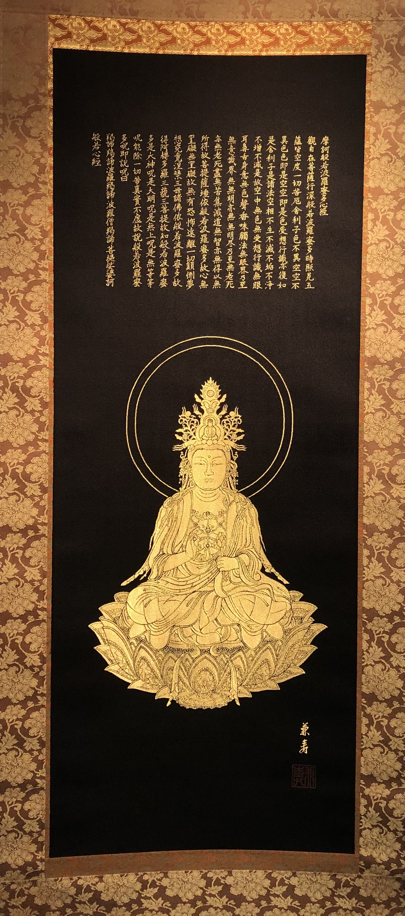兼壽作品《心經觀音》,據鄧偉雄介紹這是織繡作品,非常精細。