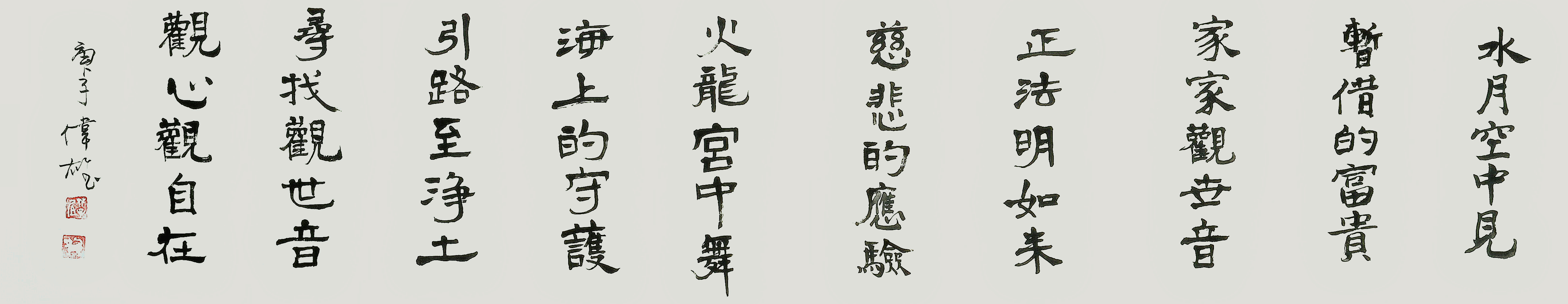 鄧偉雄為《觀心自在:香港觀音誕與觀音信仰探源》所題寫的書法,該書獲香港出版總會主辦、政府「創意香港」贊助的首屆「想創你未來—初創作家出版資助計劃」資助出版。