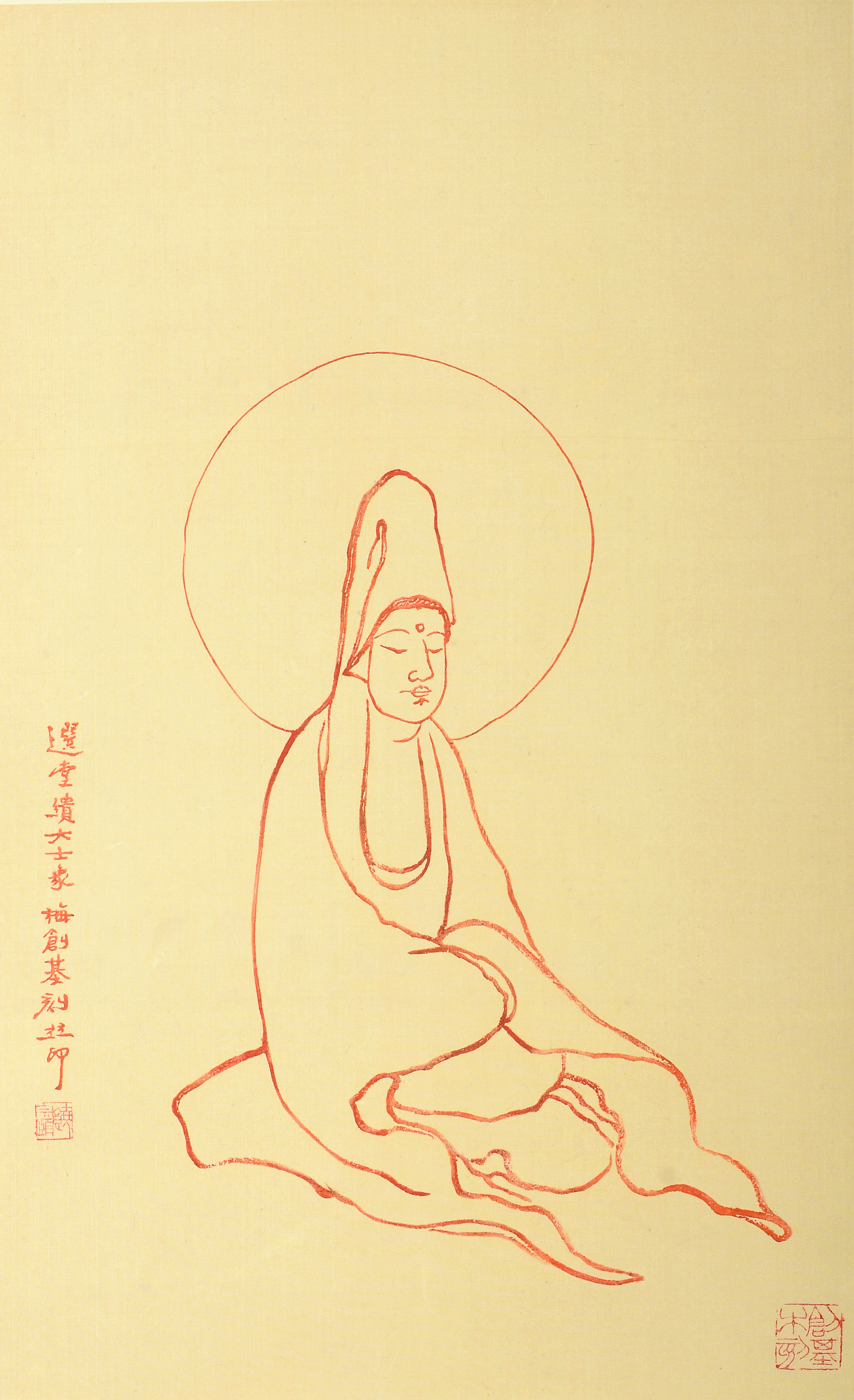 饒宗頤作、梅創基刻的《硃描觀音》,現代。此作是饒宗頤繪寫之簡筆觀音,由梅創基刻成,並親自拓成相贈鄧偉雄,具有紀念價值。