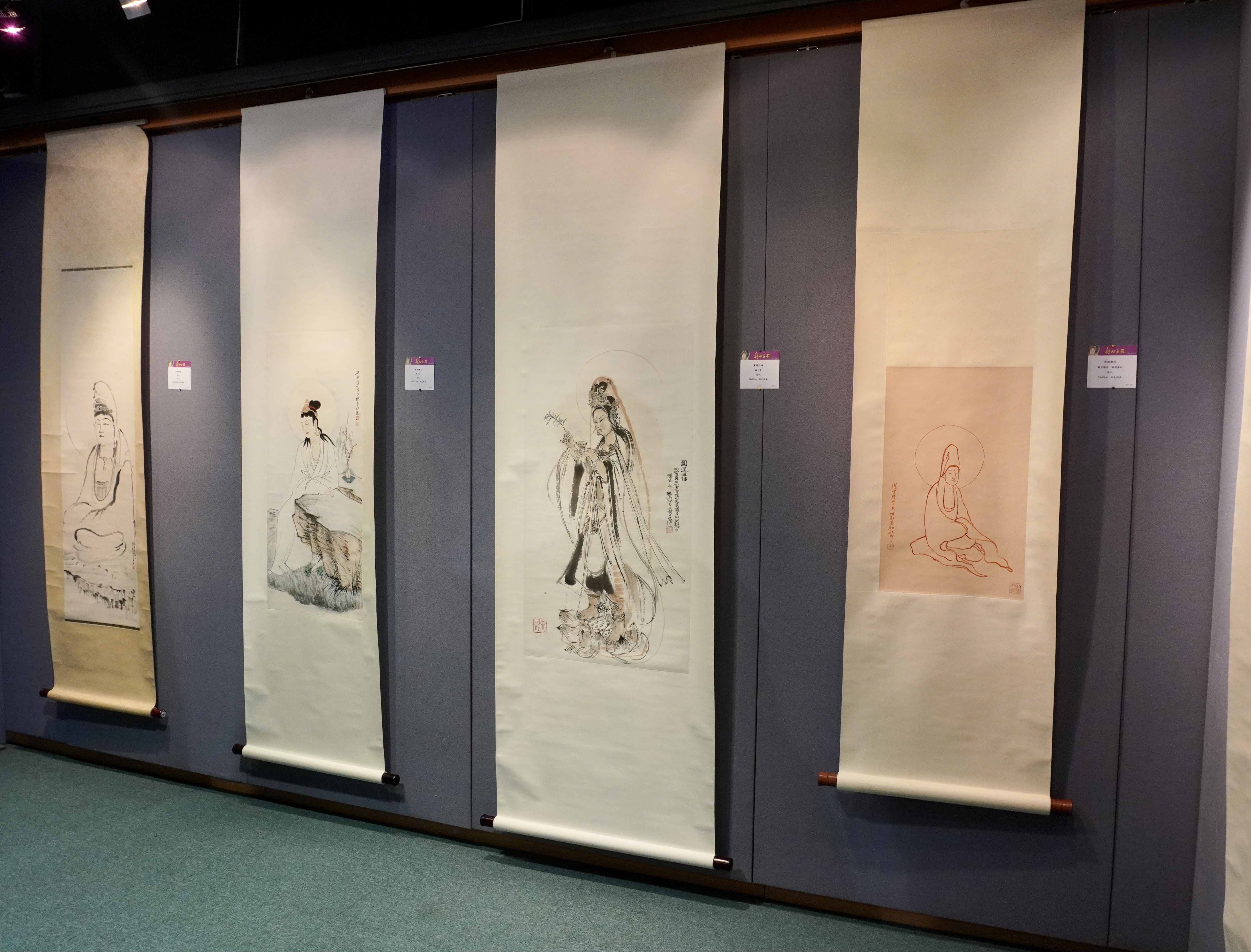 除上述書中所載展品之外,展覽更獲鄧偉雄借出多年私人珍藏,如張大千於 1943年繪的《淨瓶觀音》,是畫家四十餘歲的作品,從畫風看當時已有唐人風格,有機會是張大千第一次從敦煌回到成都之後所繪之觀音;程十髪繪《圓通三昧》觀音像,該展品乃程十髮為鄧偉雄所繪之觀音大士,用筆飛動,應受吳道子筆法影響而成。此外,亦展有清代宮廷供奉之金繪觀音;饒宗頤繪、梅創基刻硃描觀音版畫等多幅觀音畫像和明清時期塑像。看着展場內的觀音法相,莊嚴安詳,令人心靈頓然舒泰平和。(撰文、部分圖片:Janice)