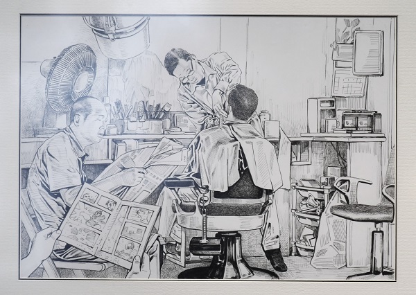 「後巷理髮店」左下角正在看漫畫的小手是曹志豪的兒時回憶。