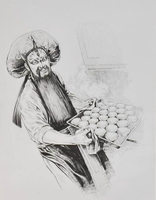 張飛焗蛋撻(上)、關羽沖奶茶(下)古今融合,在個展中為曹志豪帶來新商機。