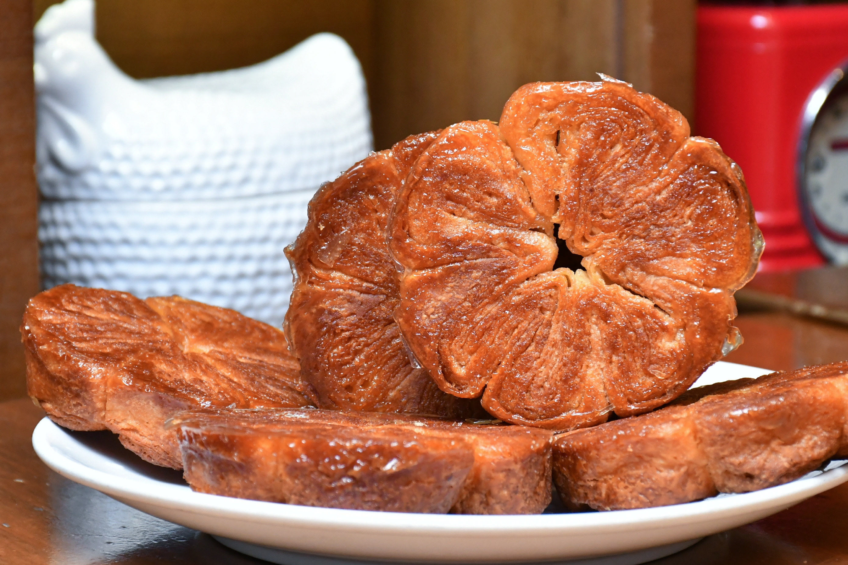 餐廳最新推出波爾多特產「可麗露」(Cannelé Bordelais)(上)及法式奶油酥(Kouign Amann)(下)。現在不用飛到法國,只在香港街上已能吃到最正宗的法國小吃。(馮瀚文攝)