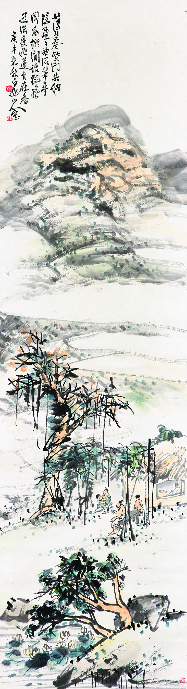 王一亭作品《薄暮納涼》,1930年,150×41cm。