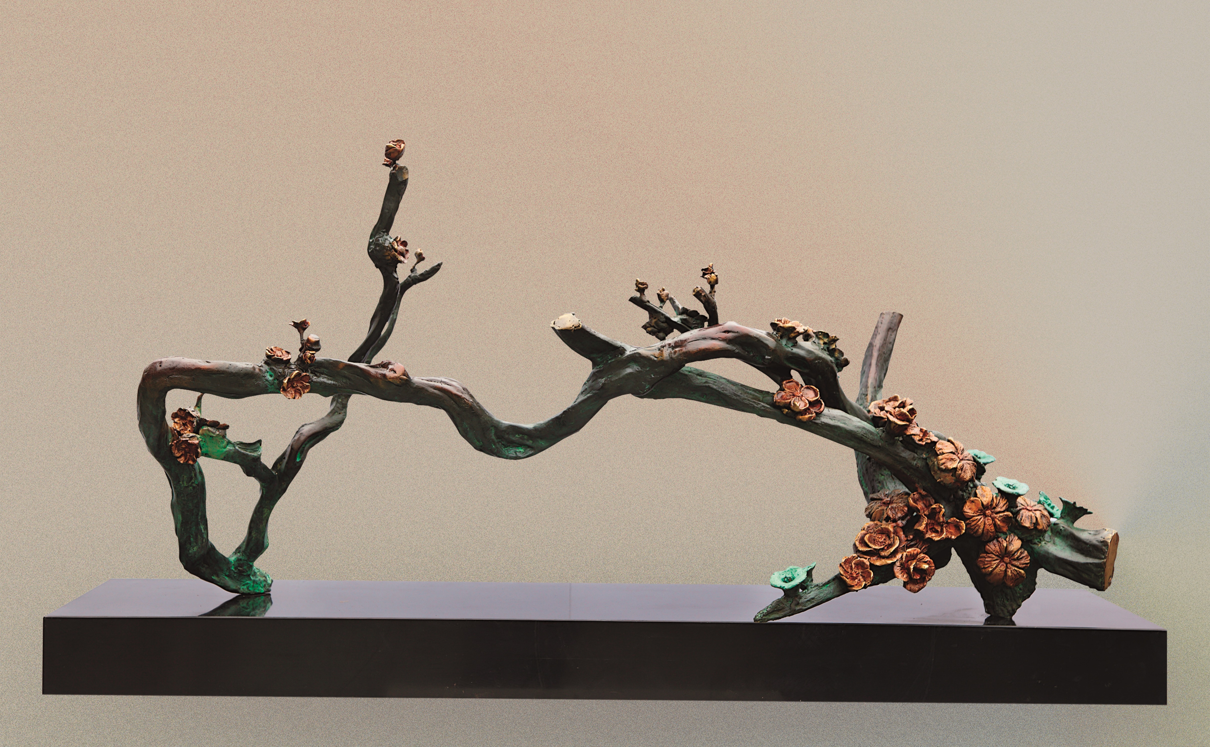蕭暉榮雕塑作品《梅花醉倒天地春》,青銅 ,122×40×59cm。