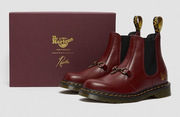 英國Dr. Martens出品的靴子向來充滿英倫街頭風味,廣受潮人及年輕人歡迎。品牌與日本NEEDLES再次合作推出聯乘靴款,以經典2976型號靴款作為藍本,設計師於鞋面加上金屬流蘇細節,搭配鞋跟外側的蝴蝶徽標,在保留經典的Chelsea靴型時,糅合了Needles舊派美式學院風格,展現出優雅的復古味道,從街頭走進辦公室。