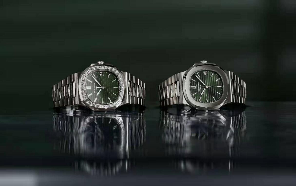 5711/1A-014腕表最新鋼製款式配以橄欖綠色表面,另有表環鑲有長方形鑽石款式(編號5711/1300A-001),為將於今年停產的經典表款5711/1A賦予別樣氣質。