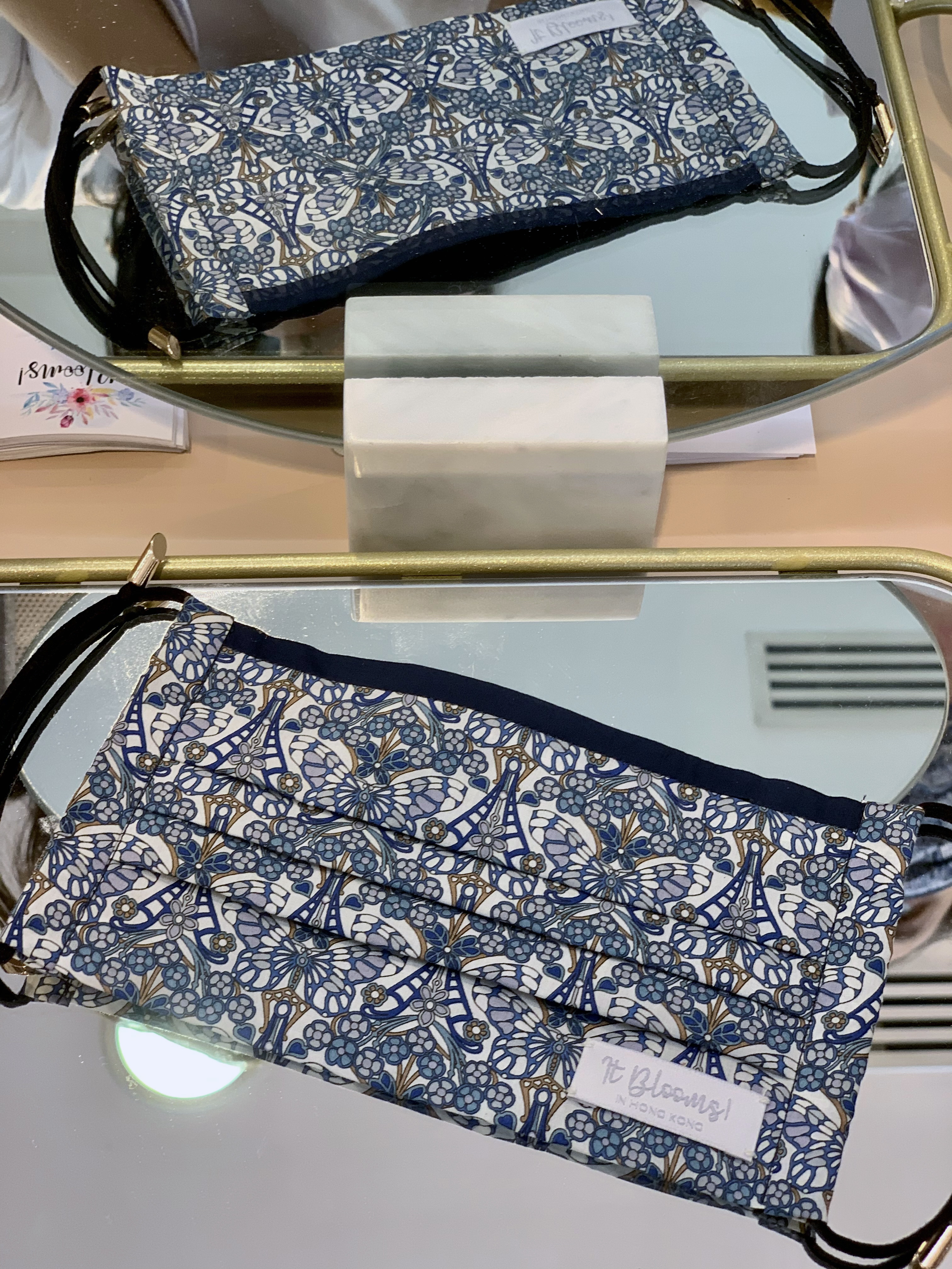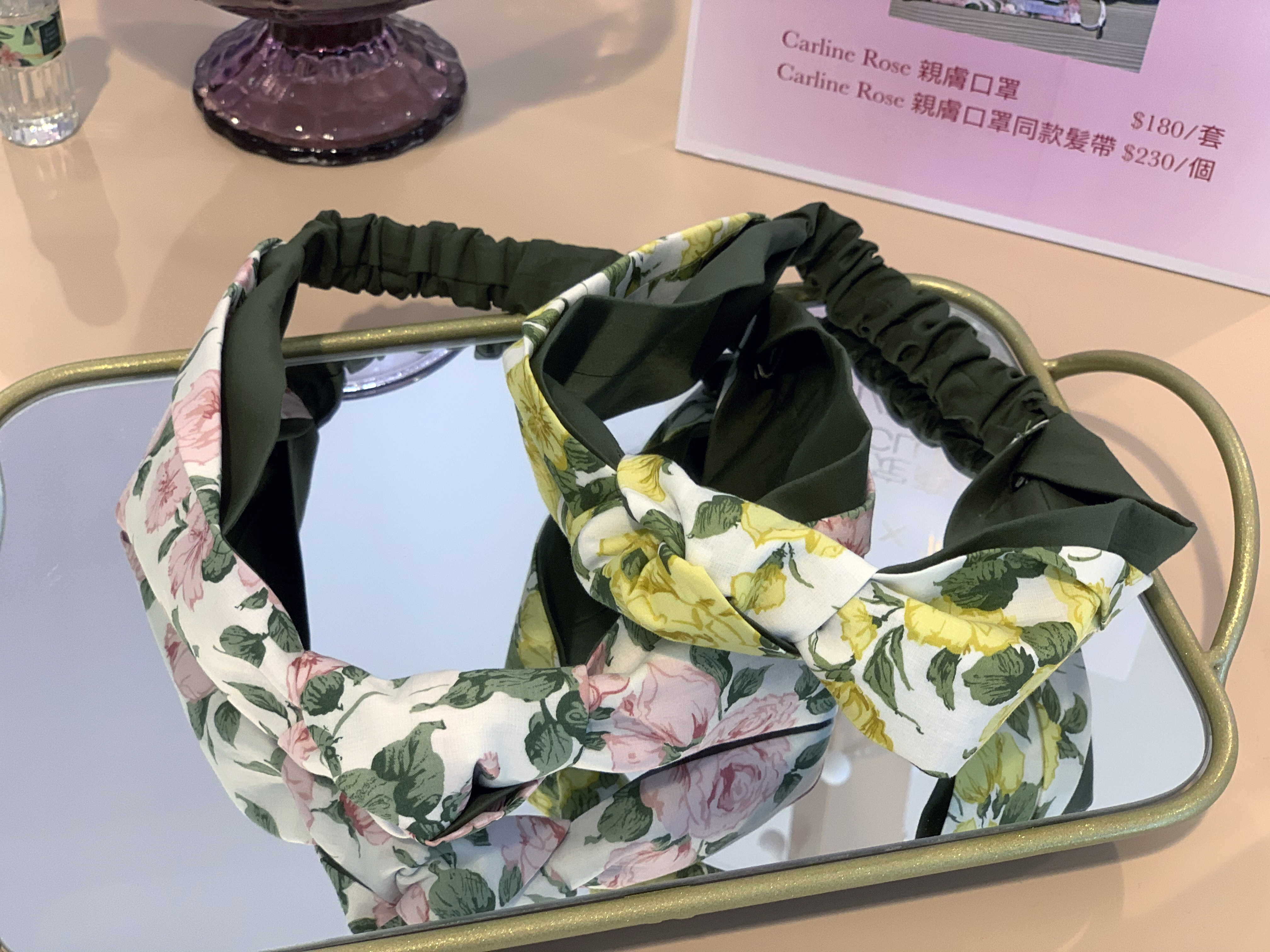 市集內最吸引記者的是It Blooms!店舖,店主Winnie告訴記者,他們在去年末創辦,之所以在疫情發生這麼久後才開店,是因為他們花了很多時間去測試及購買口罩布料。他們選用英國皇家御貢面料Liberty of London頂級布料人手製作布口罩,並在意大利生產製作。絢麗典雅的碎花圖案,讓人戴口罩也戴得心花怒放。品牌首次參與市集,今次推出限定兩款全新圖案的口罩Carline Rose Pink及Carline Rose Yellow和頭帶。