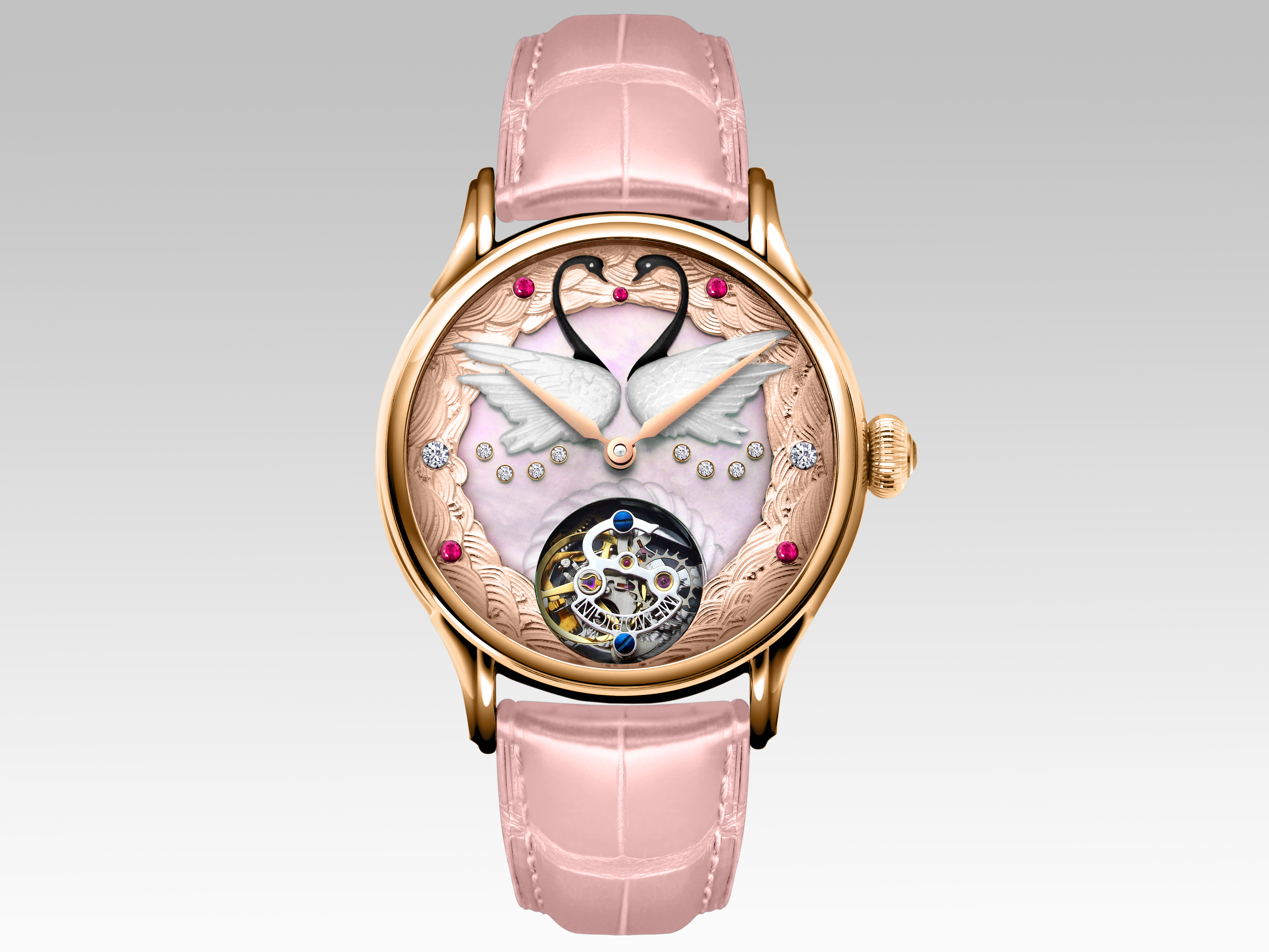 余嫿受中國古典文學《山海經》的愛情故事啟發,創作出「桃花燕遇」陀飛輪腕表。腕表以象徵美滿愛情的桃花,以及代表生機與希望的燕子為主角。「桃花盛開,燕子歸來」,更象徵對美好生活、愛情的憧憬。