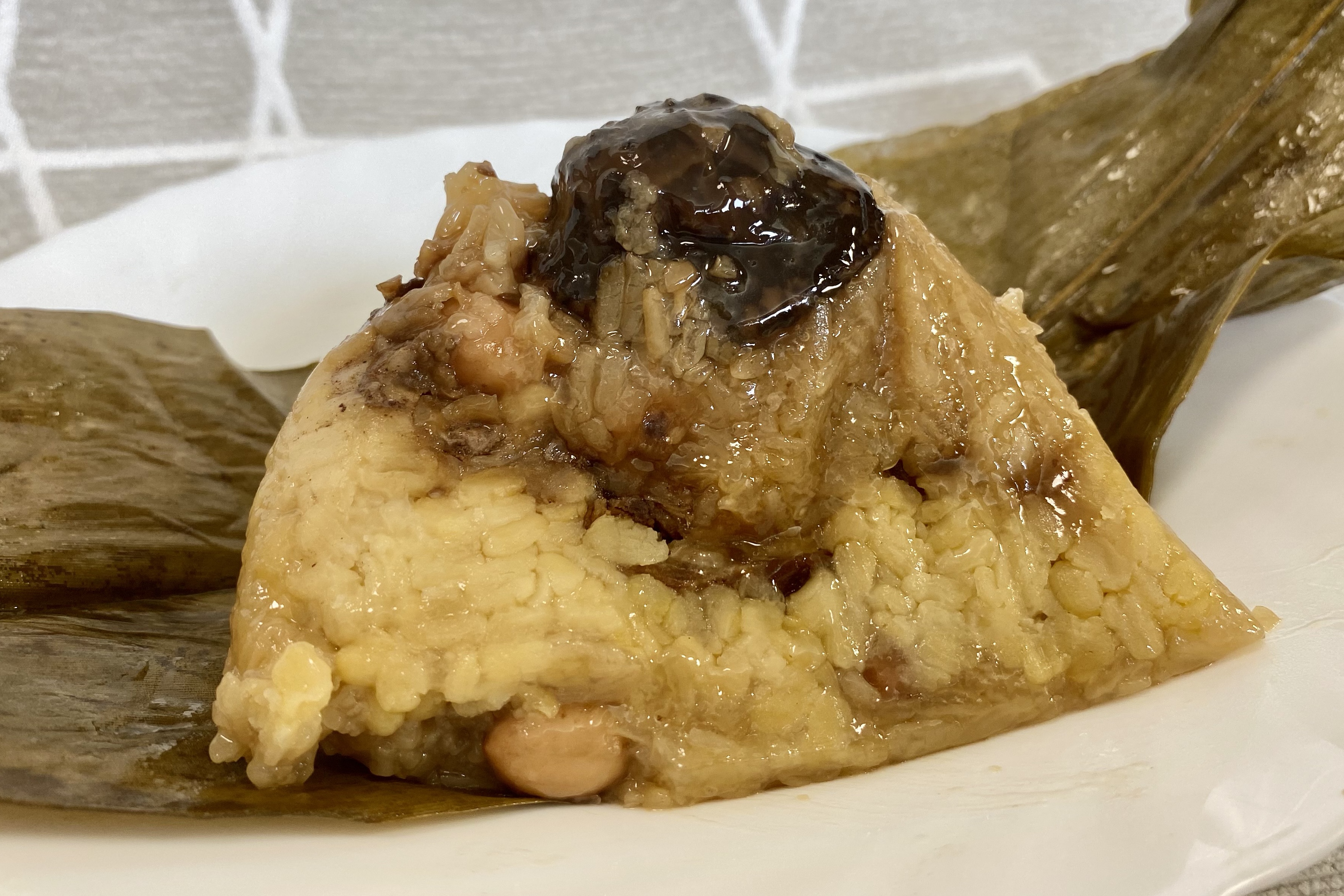 奇華餅家推出的「雙黃金華火腿瑤柱裹蒸糭」,以原粒瑤柱、花菇、蛋黃、甘栗、蓮子、金華火腿製成,口感層次豐富,鹹香惹味。另一款「陳皮鴨腿肉糭」,鴨肉以秘製滷水汁煮至入味,加上燒腩肉、冬菇等配料,帶有陳皮獨特香氣,吃起來不油膩。