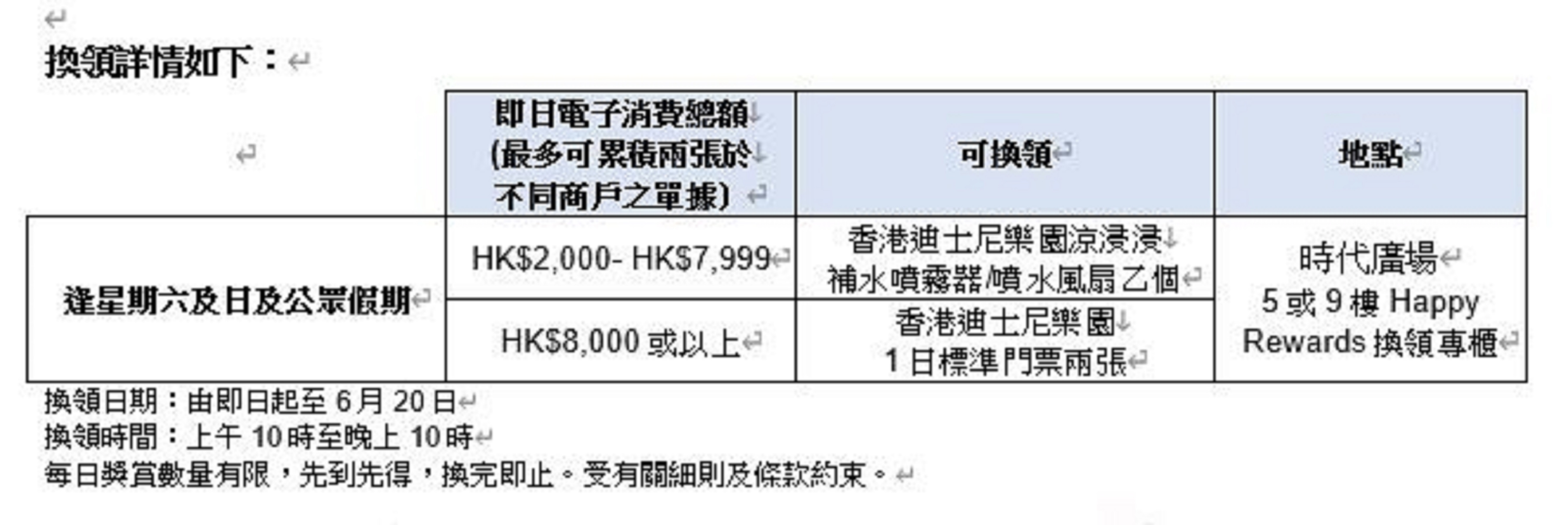由即日起至6月20日(逢星期六及日及公眾假期),凡於時代廣場即日以電子消費滿指定金額,即可換領香港迪士尼樂園限定禮品及樂園門票,讓你與家人入樂園參加「皇室佳釀美食節」,更可到訪全新「奇妙夢想城堡」,體驗歡樂的的仲夏旅程。