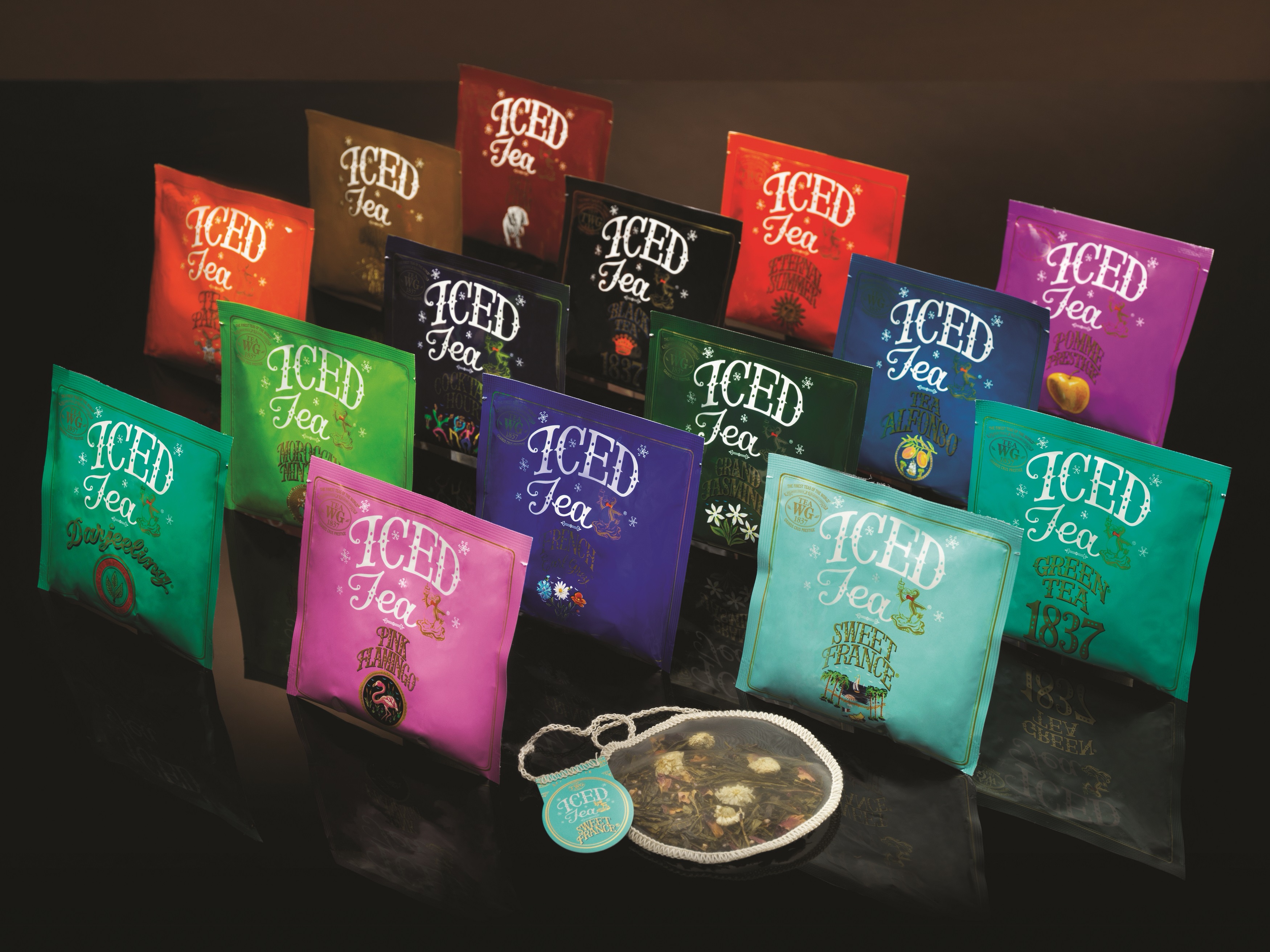 手工冰茶包系列包括多款經典茗茶及獨家調配茶,如融合了高雅的果實與鮮花香,飲後還會留著果實與焦糖的回甘滋味,甜中帶澀的1837綠茶;法國藍色矢車菊與特選佛手柑混合,帶有果香的法式伯爵茶;以絲絲的甜蜜盛夏玫瑰花點綴南非黑茶,並加入生莓果味和桃子的盛夏緋紅等,不論鍾愛香濃醇厚或香甜淡雅的味道,總會找到適合自己的冰茶包。