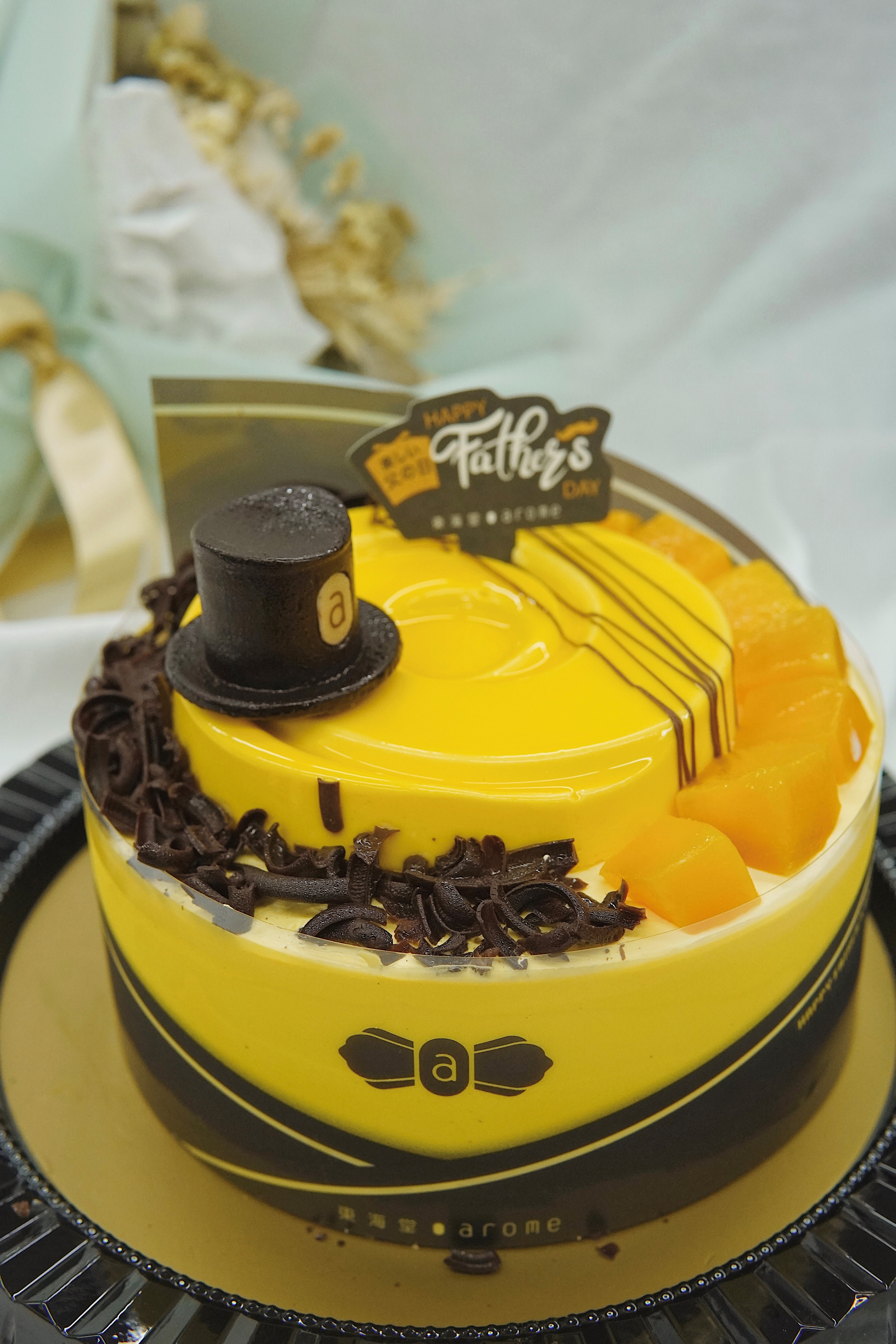 另一款「芒椰公爵」是芒果椰子忌廉蛋糕,型格的設計代表爸爸帥氣一面。蛋糕配有黑色朱古力紳士帽,恍如優雅的紳士,在亮麗的橙黃色鏡面蛋糕上更加凸出。面層還鋪上粒粒芒果及朱古力碎,內層的海綿蛋糕則蘊藏芒果果凍,酸甜爽口,綴以朱古力脆珠,即使不喜歡甜品的爸爸,也難以抗拒。店舖更推出優先訂購優惠,於6月17日或之前訂購,即可獲85折優惠。 (記者、攝影:Janice)