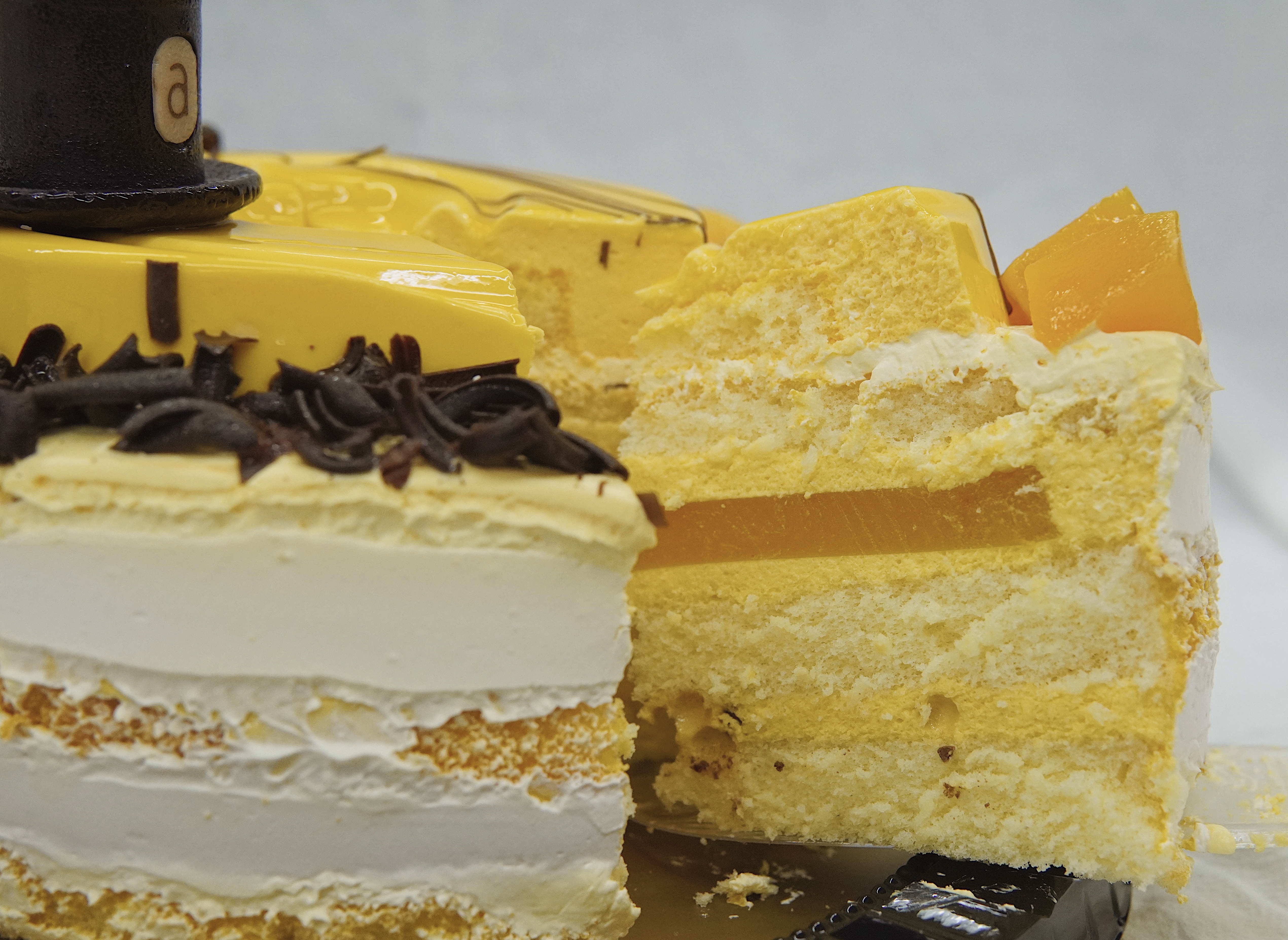「芒椰公爵」蛋糕中添加清新椰子慕絲和幼滑芒果慕絲,令味道更具層次