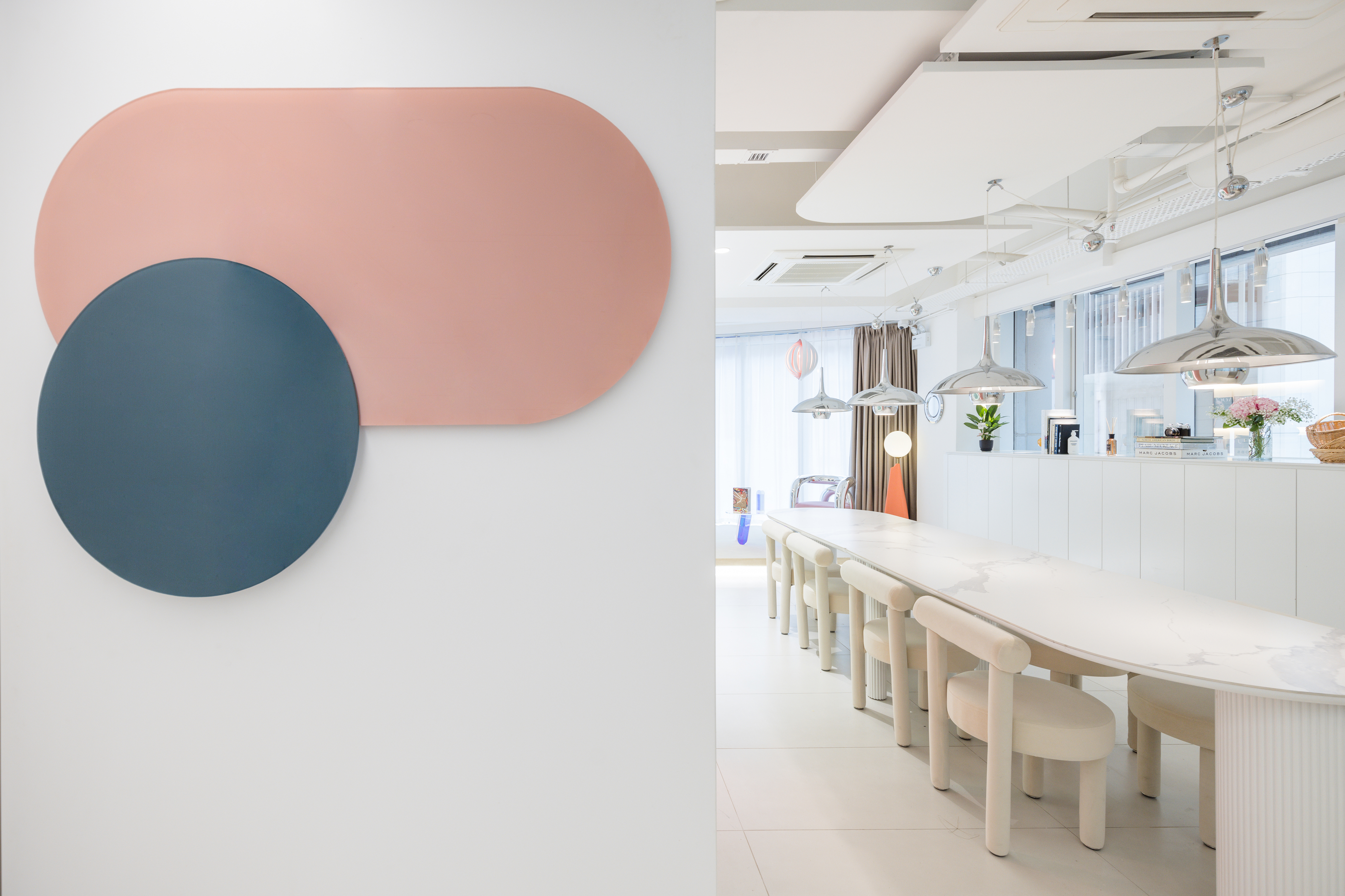 MOTD Concepts由三個室內設計元素建構而成,放在主要活動場地中心的雲石紋長餐桌最多可同時容納12位賓客,與現代風格餐椅相映成趣。餐桌旁的結構牆配備可用於放置小食的備餐架。此外,於落地窗戶旁更設有休憩空間,柔和色調、藝術擺設,打卡一流。(記者:Cyan)