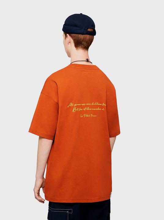 多款單品除使用一貫的印花設計外,更用上刺繡,增加精緻感。首推一款寶藍色小王子繡花TEE,TEE的正面繡上小王子的模樣,後背則印上小王子、狐狸和玫瑰站於星球上的圖案,經典華麗!