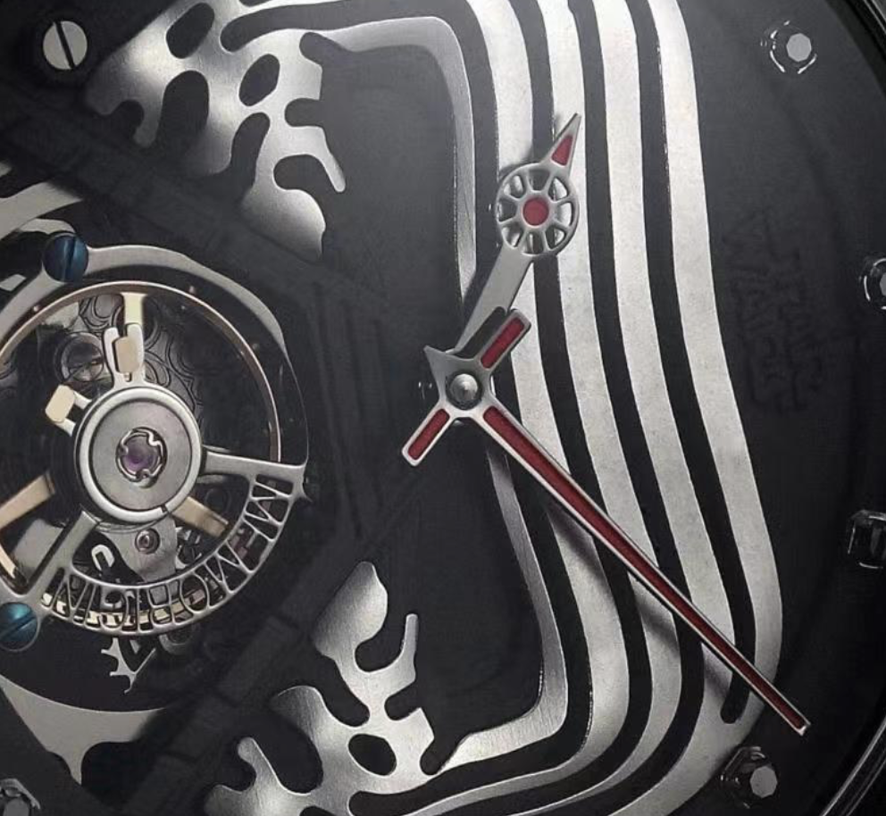 腕表採用Kylo Ren的十字紅色激光劍作分針,戰鬥機 (TIE Fighter) 造型作時針;表面亦鑲嵌12粒黑鑽石作為時間刻度,使整枚腕表顯得為珍貴重。(記者:雲遜)