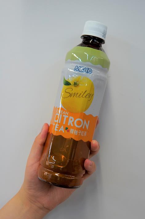 金黃色的韓柚子紅茶瓶身給人清爽活力的感覺。