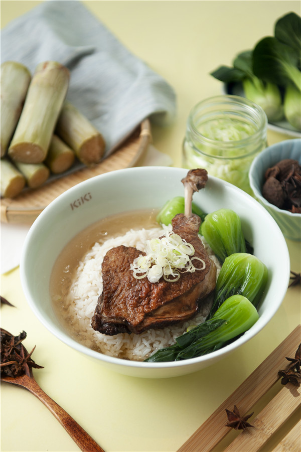 「宜蘭鴨腿湯飯」,湯底以鴨骨及鴨肉烹調而成,味道濃厚。