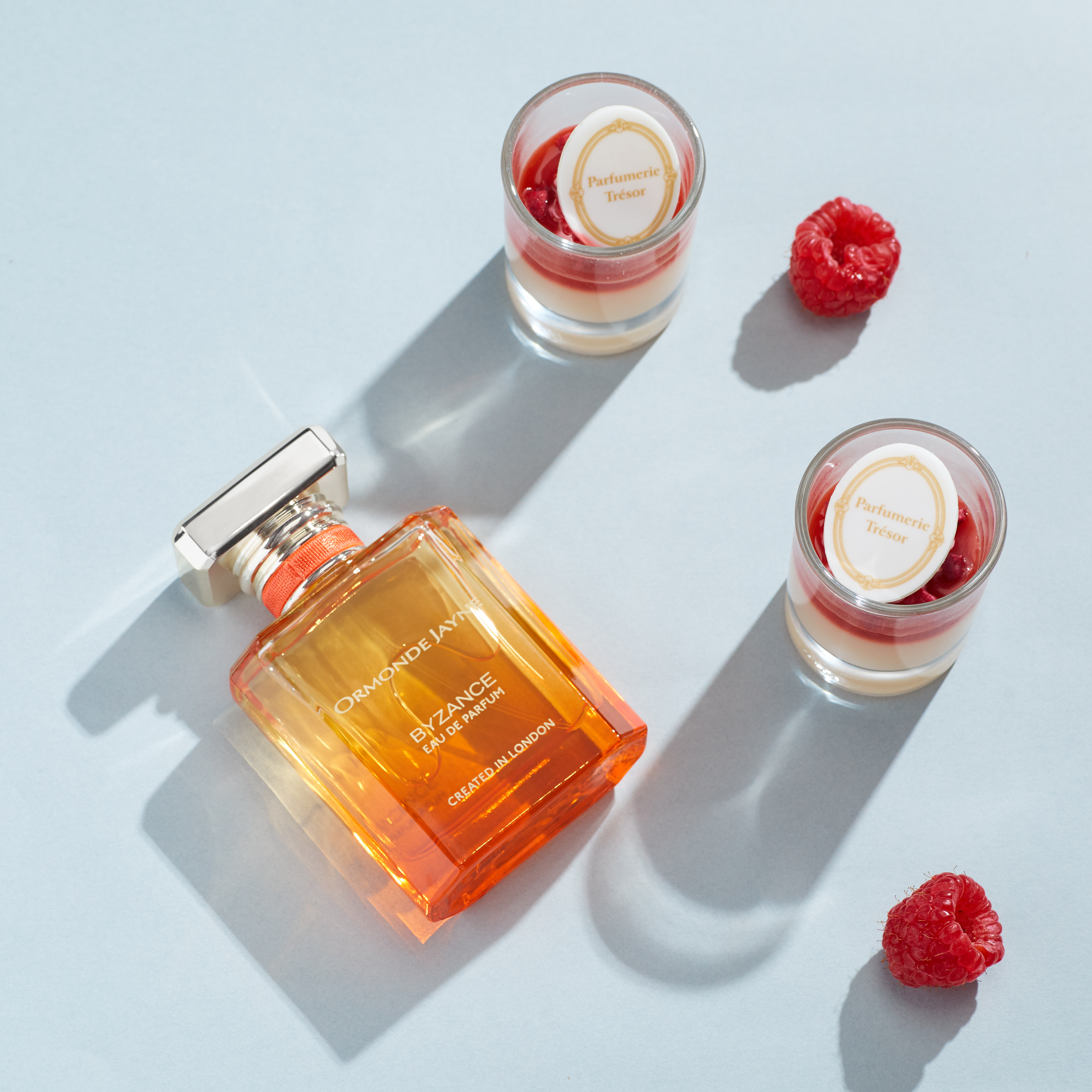 荔枝啫喱配紅桑子奶油,創作靈感來自英國香水品牌Ormonde Jayne的Byzance香水,香味源於絲綢之路沿途遇上的花朵。