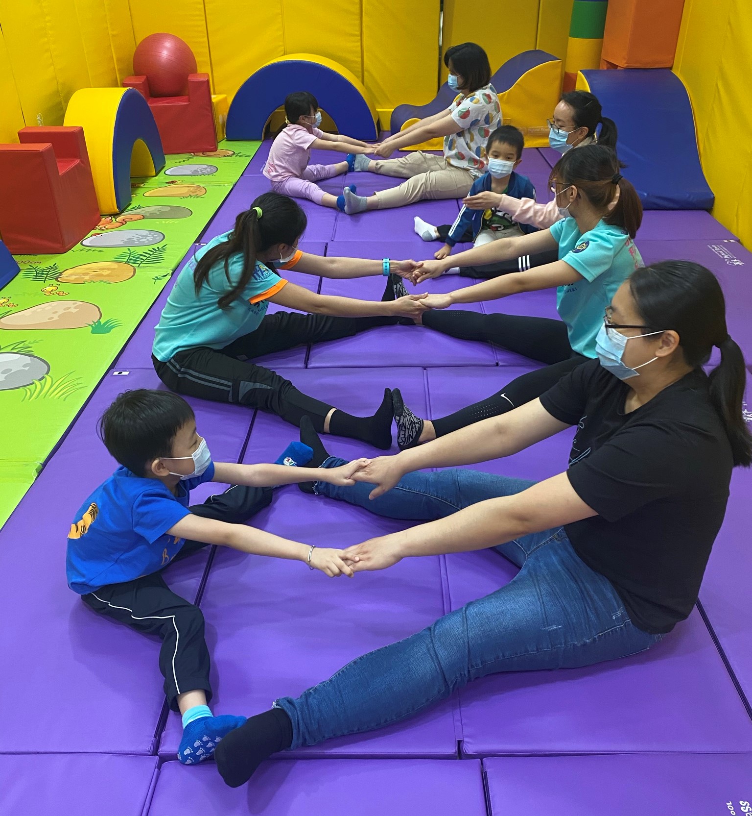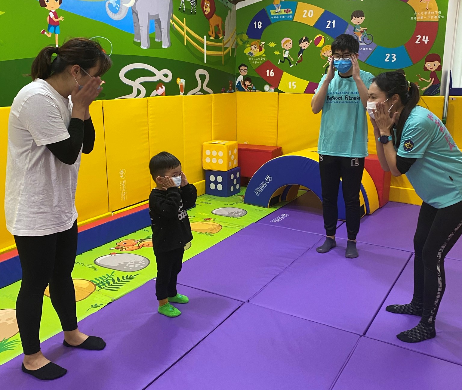 家長和小朋友一起「擺pose」,扮樹、船及烏龜,趣味盎然,考驗親子默契,又可訓練平衡力。