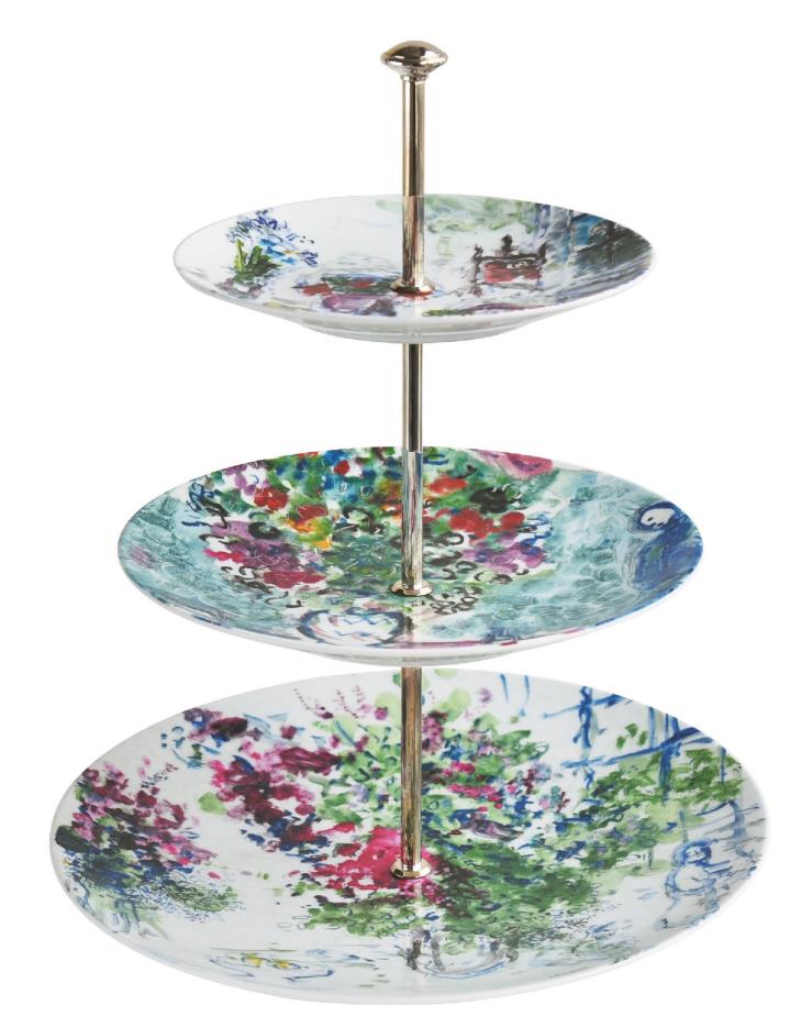 Bernardaud的「Les Bouquets De Fleurs De Marc Chagall」系列,以俄法著名藝術家De Marc Chagall的「Les Bouquets de Fleurs」系列與餐具結合,Chagall的作品游離於印象派、立體派、抽象表現主義等多個流派之間。1909年,Chagall從花束得到靈感,通過體現充滿想像力的內心世界,於作品中運用了肖像元素,帶領觀者提升精神領域層次,象徵神聖的奉獻。花朵的出現喚起了人們對理想的永恆追求,將觀者帶向一個色彩絢麗的世界。「Les Bouquets De Fleurs De Marc Chagall」系列陶瓷茶具精選了畫家七款作品,當中包括地中海時期創作的五款單版畫。茶具系列包括沙律碟、3層餅架、茶杯連碟等,是配襯優雅下午茶的上佳之選。(記者:Haye)
