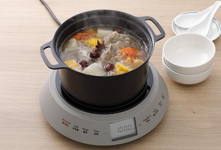 IH電磁爐採用防滑微晶石面板,防止鍋具滑走,烹調模式則備有火鍋、煎、炒及自定義模式。只需配合適用的鍋具,平坦的鍋底與電磁爐面板緊密貼合,底部溫度感應器可以準確控制溫度進行加熱,設有10段火力調節,火力由200W至2000W,大火力能均勻地滲透到鍋具中,煎炒時更得心應手。可因應不同的烹調方式調節控溫,令餸菜色香味美,靈活切換,滿足多種煮食需求。(記者:雲遜)