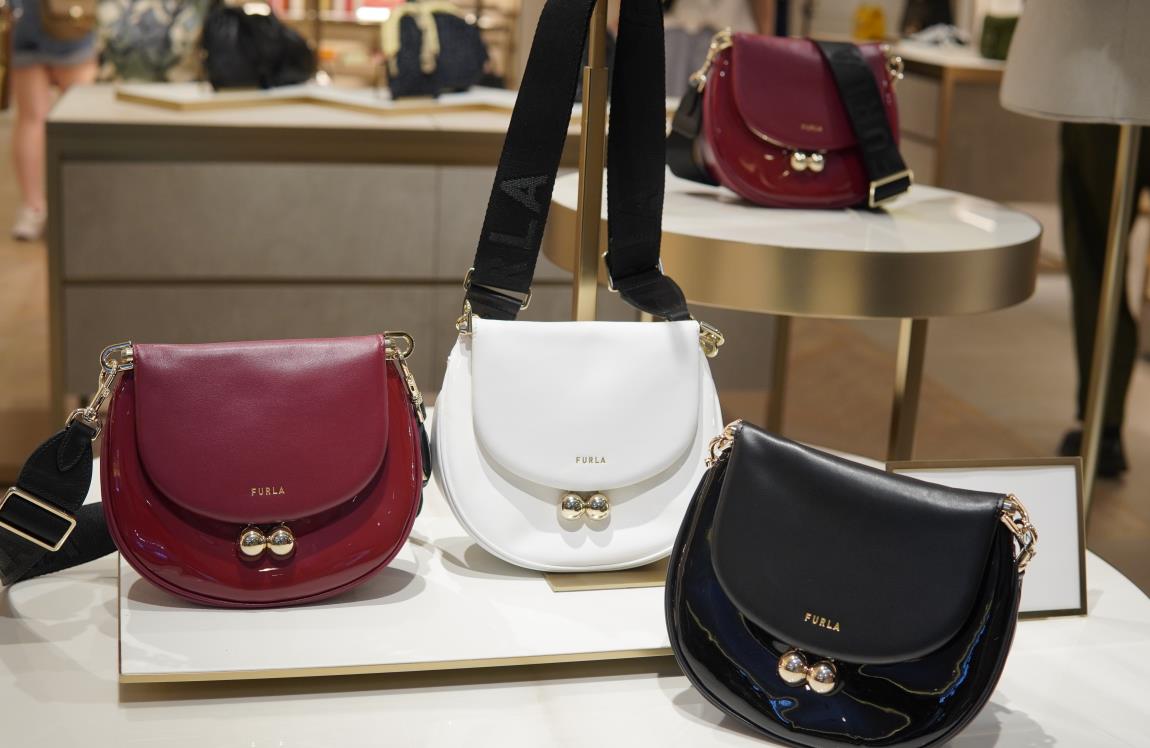 Furla Portagioia是新季的主打,斜揹袋以漆皮與霧色小牛皮組合而成,弧形線條配上金屬釦展現摩登魅力,設計細膩精緻。手袋配有可調節可拆卸肩带,內裏備有卡片夾層的設計,實用與顏值並重。手袋備有兩個尺碼、三種顏色可供選擇,其中酒紅色相當復古。