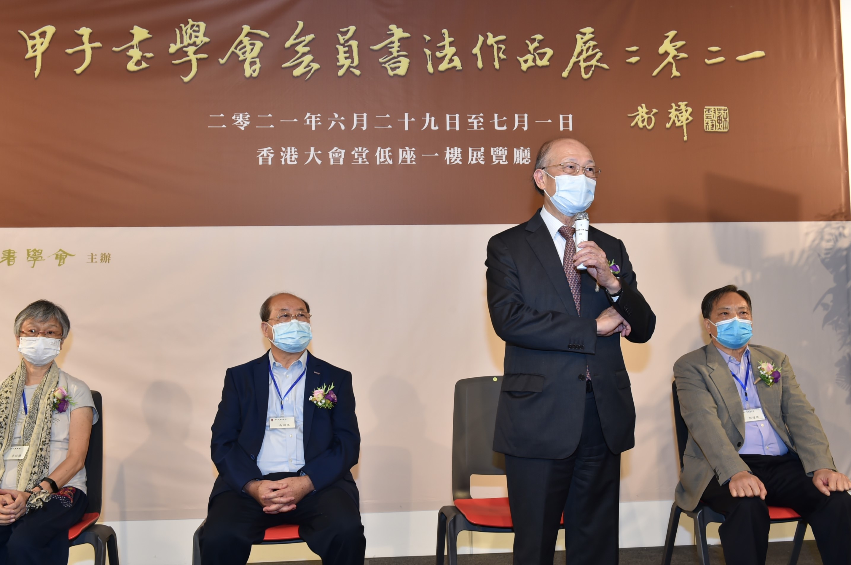 甲子書學會會員書法作品展2021開幕式邀請眾多嘉賓出席,包括澳博控股主席何超鳳、香港奧委會會長及澳門博彩控股聯席主席霍震霆、香港科技大學校長史維教授、香港中文大學副校長陳偉儀教授、香港理工大學前校長潘宗光教授等各界人士,香港大學校長張翔教授亦送上花籃致賀,場面熱鬧。