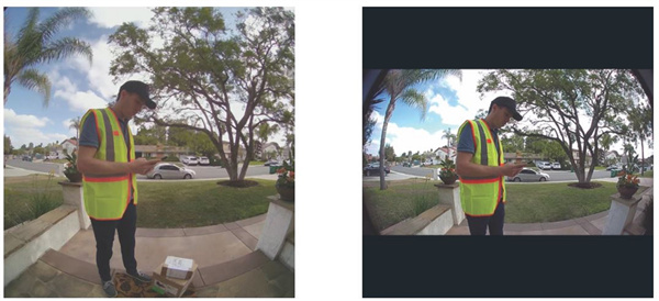 Essential無線視像門鈴(左)可捕捉比傳統視訊門鈴(右)更廣闊的畫面。