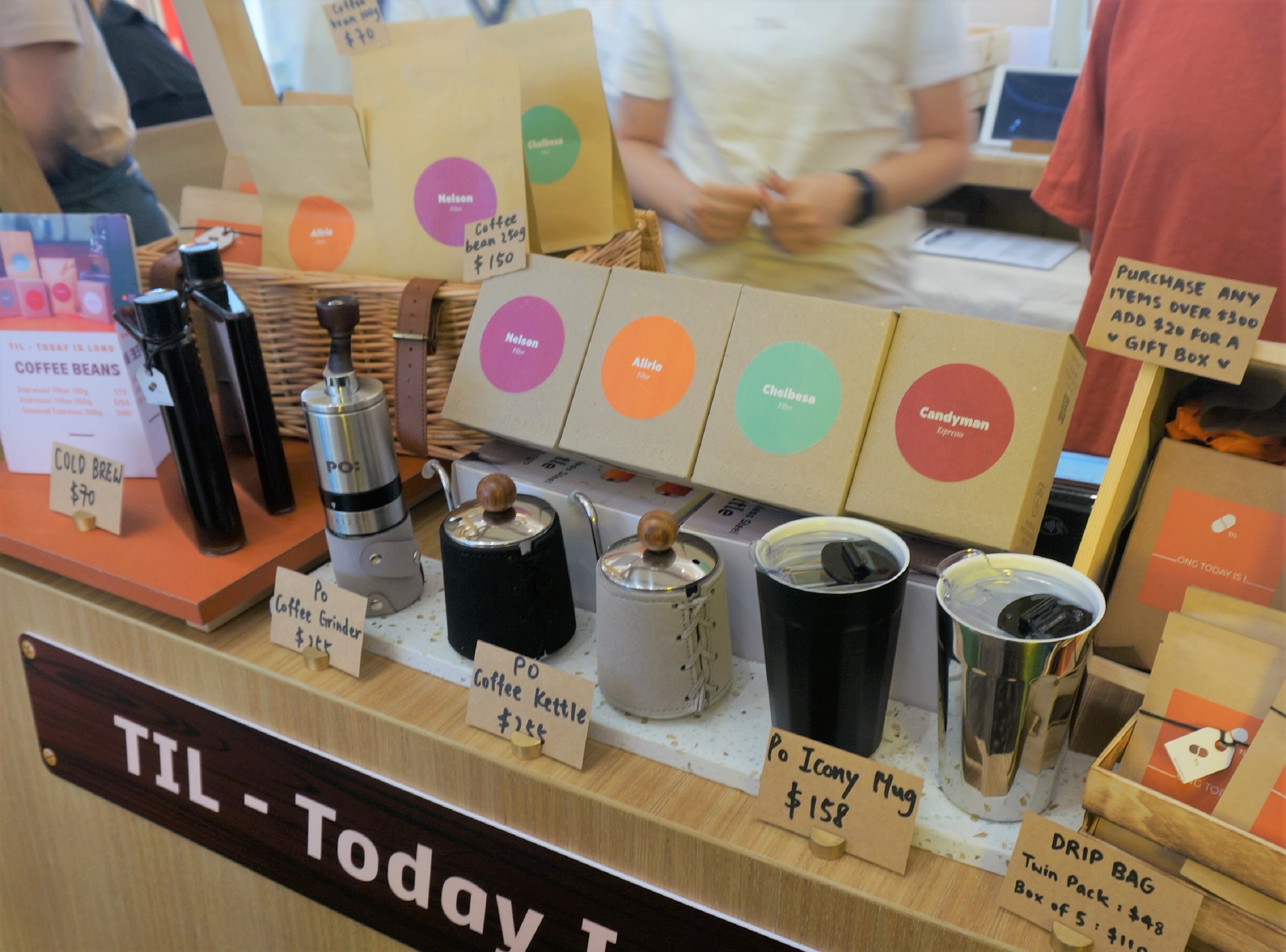 攤檔中售賣來自世界不同產地、處理方法及烘焙度的咖啡豆與各式各樣的咖啡用具。