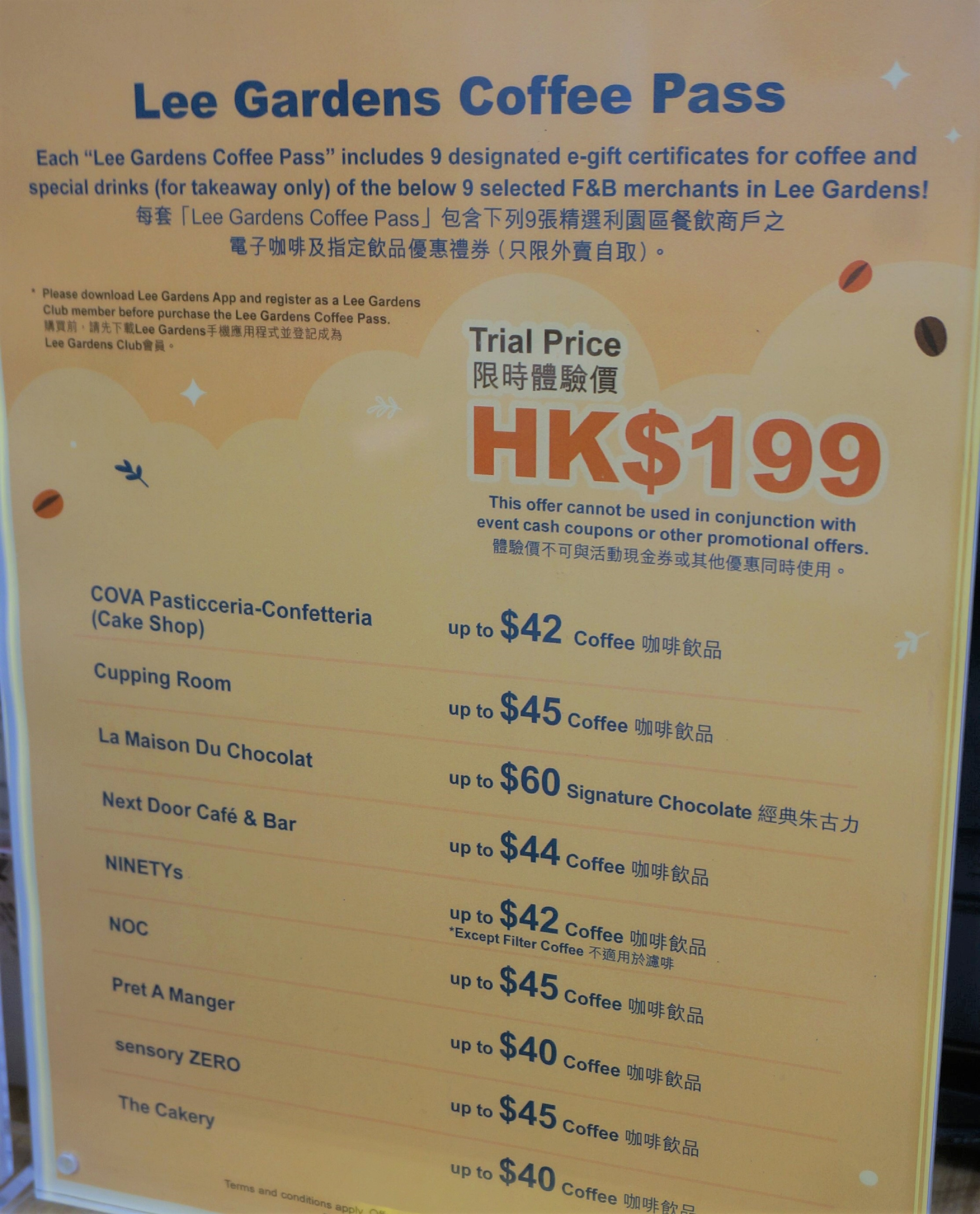 遊客可於市集以HK$199購買總值HK$400的「Lee Gardens Coffee Pass」。