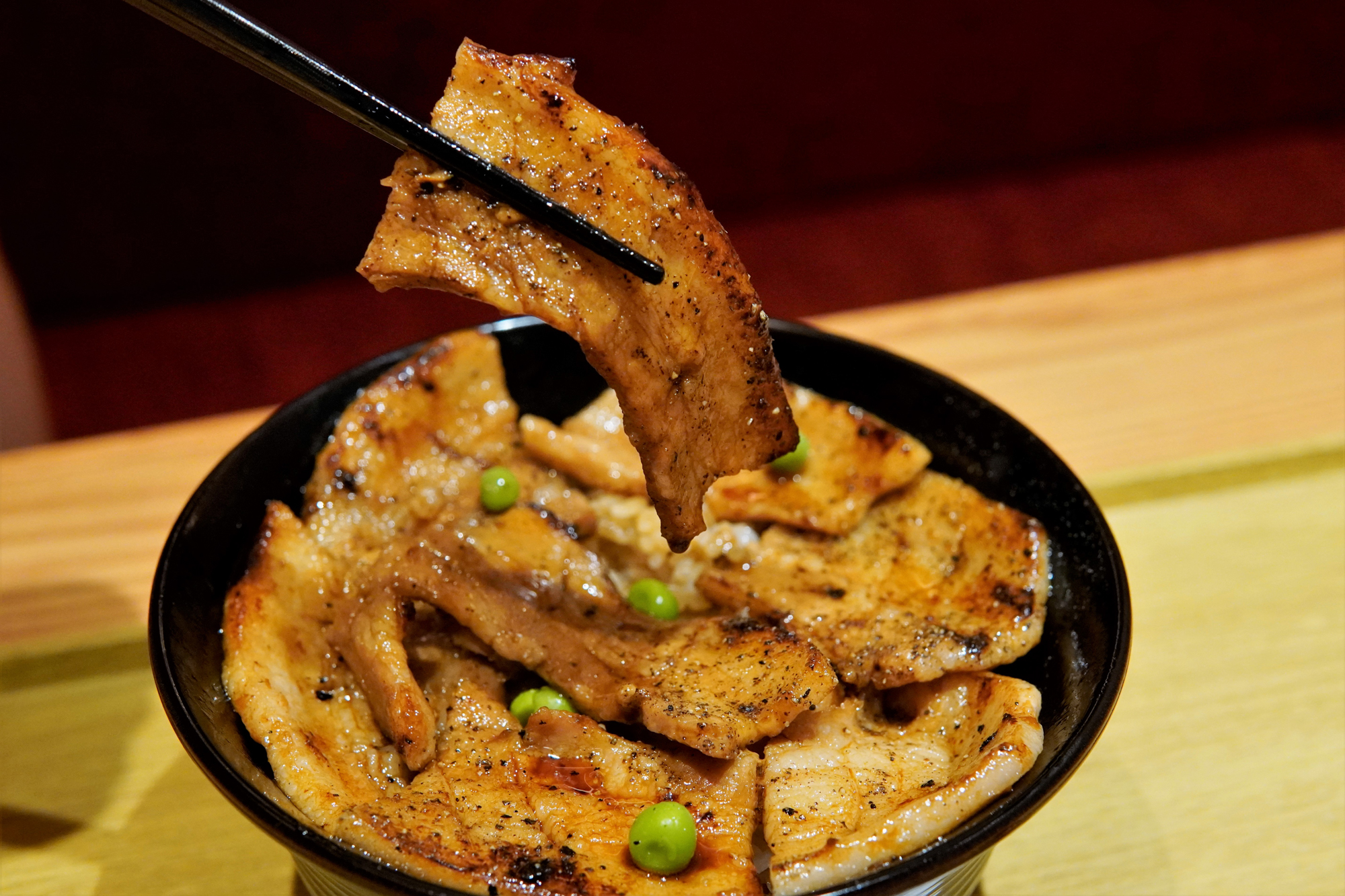「豚肉」、「醬汁」及「米飯」是成就豚丼美味的關鍵,缺一不可。新店帶來店舖逾80年歷史的秘製祖傳醬汁,用傳統方法熬製的醬汁鹹香惹味;豚肉則採用了由日本專家嚴格評級為珍稀的KAMIKOMI豚肉,是日本五日市豚肉店最優質的3%至5% 豚肉眼及豚腩肉,油脂豐腴,肉質幼嫩軟滑,入口鮮甜多汁;加上香甜軟腍的宮城縣產特A級一見鍾情米,三者融合帶來豐富口感層次,立即俘虜筆者的味蕾。