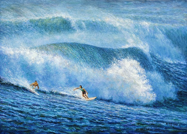 適逢奧運會,有美術館來了一場藝術與運動的聯動。現正舉辦的「一新剛柔:香港藝術家與運動家」展覽,展品來自38位香港藝術家,包括風漸、馬銓、陳朝龍、巢錫雄、符聞一等,合共71組展品,大部分為今年創作。他們透過如素描、油畫、水墨、水彩、岩彩等不同媒介,呈現各具特色的運動主題作品。運動若以繪畫演繹出來,難度十分高,皆因人體姿態各有獨特,畫家鍾大富以岩彩繪出直立板運動員堅毅奮鬥的氣派;風漸以素描單色表現壁球運動員比賽時高度專注的氣氛;符聞一以水彩渲染出賽龍舟時健兒同心協力的氣勢。畫家以寫實、寫意,甚至抽象等不同方法畫出不同的運動場面,趣味盎然。(記者:Janice)