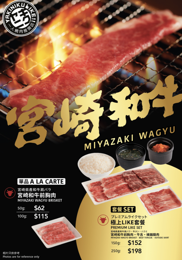 餐廳引入日本宮崎和牛將人氣「LIKE套餐」升級。