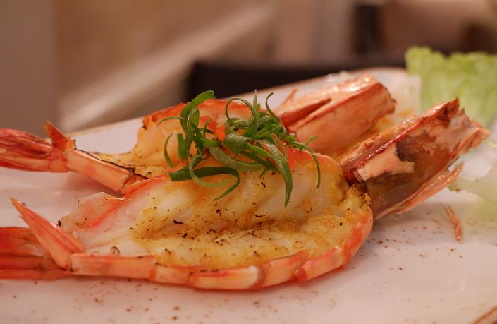 雖說是下午茶,卻非常飽肚,歸功於越式生熟牛肉河,河粉幼細纖薄,吃起來滑溜溜的,湯頭清澈帶有濃郁牛味,不過略嫌比往日的有點鹹。鹹點還包括香蒜牛油燒大蝦、柚子海鮮沙律及香脆西貢春卷、越南脆炸蝦餅,將越南的地道小食以精緻的方式呈現,同樣美味可口。