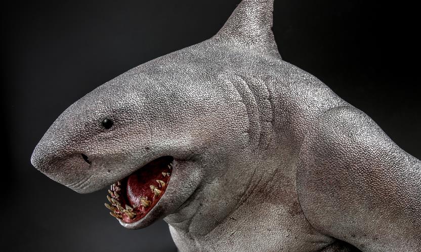 使用搪膠素材打造皮膚,真實呈現鯊魚粗糙皮膚的紋理。