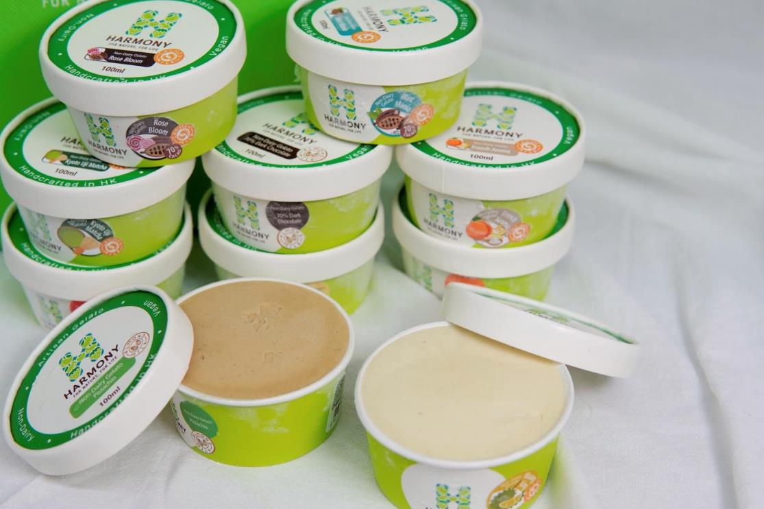 本地甜點品牌Harmony推出多款香港新鮮製作的不同口味植物奶雪糕,品牌由本地70後夫婦 Wilson及Vivian創立,Vivian曾遠赴意大利及加拿大研習意式雪糕 (Gelato) 及美式雪糕的理論及製造方法,讓食客能無負擔、盡情享受雪糕帶來的愉悅。