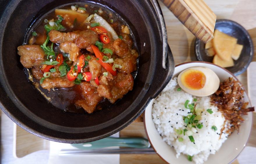 想入手台灣美食,可稍移玉步上一層,尚青商號就有出售懷舊醬料及小食,像是台灣人兒時必吃的王子麵、媽媽最愛的紅蔥醬等,還有罐頭、懷舊零食、童玩、迷你大同電鍋等可愛商品。當然,來到這間經常排長龍的人氣食店,不能錯過其美食,包括店家最有名的牛肉麵、麻辣鴨血、紹興牛燥飯、鹽酥雞,還提供素食餐單。而筆者一看到有喜歡的台酒三杯雞肉飯就馬上點餐了,店家以熱辣煲仔上桌,雞肉嫩滑,非常下飯!(記者、攝影:Cyan)