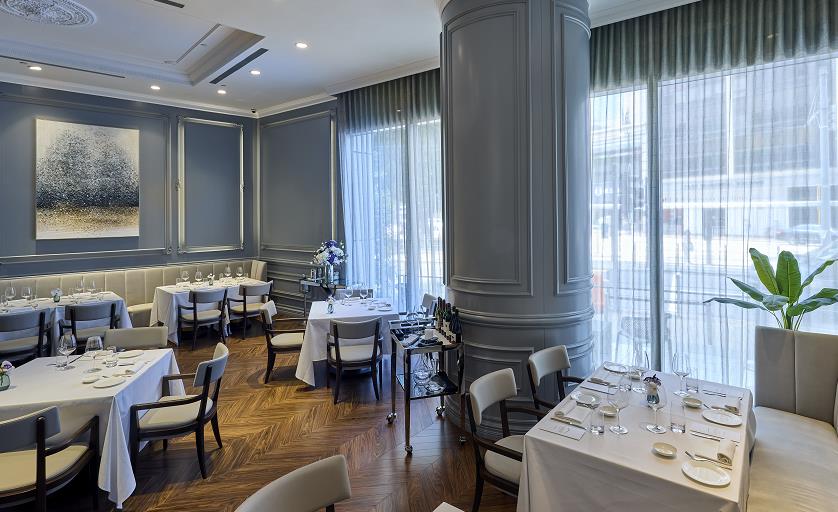 餐廳佔地1700平方呎,共可容納28位食客,並設有一間貴賓房,室內設計以淺縹色為主色調,選用的家具裝飾糅合意大利傳統工藝的古典美學及現代藝術元素。(記者:Cyan)