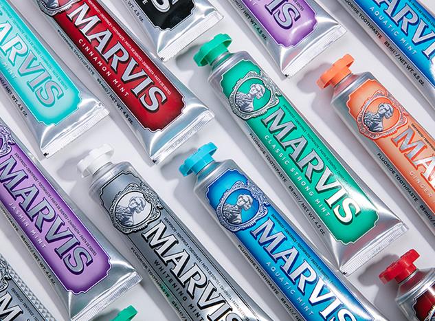 被喻為「牙膏界愛瑪仕」的MARVIS牙膏,是來自意大利的品牌,始創於1958年,被視為能彰顯品味的高級牙膏,亦有人形容它為「牙膏中的香水」,皆因它有多種不同口味,配以各種獨特色彩鋁製軟管包裝,讓用家在視覺、嗅覺及味覺上都獲得享受。